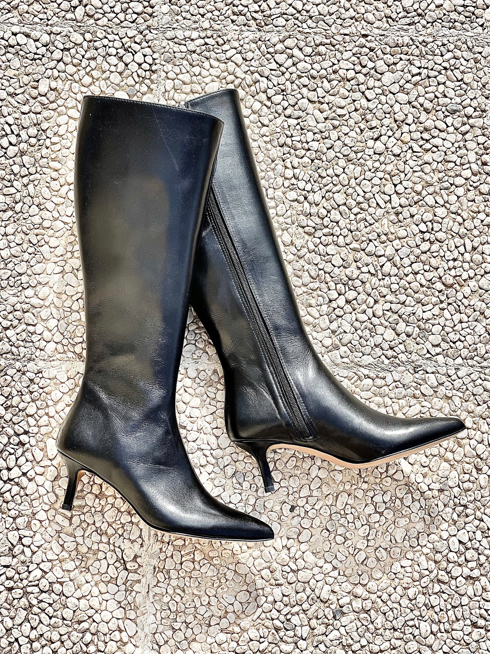 Bottes à bout pointu en cuir, talon jusqu'à 60 mm.