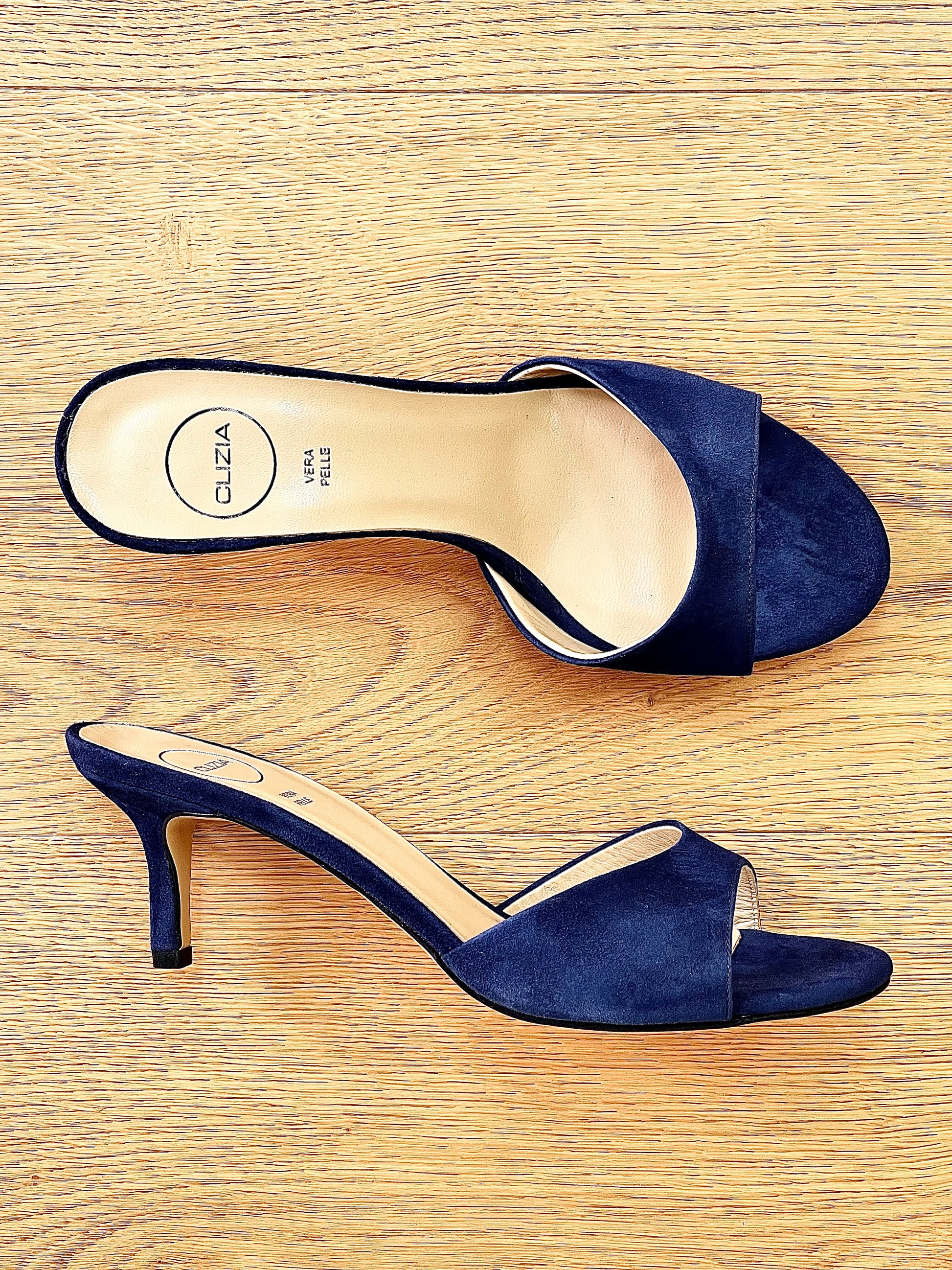 Sandales basses mules en daim sandales pantoufles talon de 6cm.