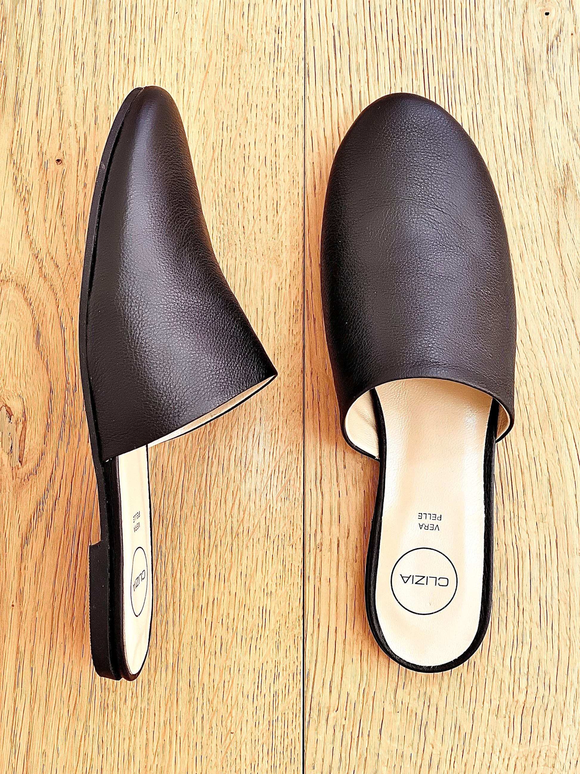 Mules basses Sabot à bout rond en cuir souple.