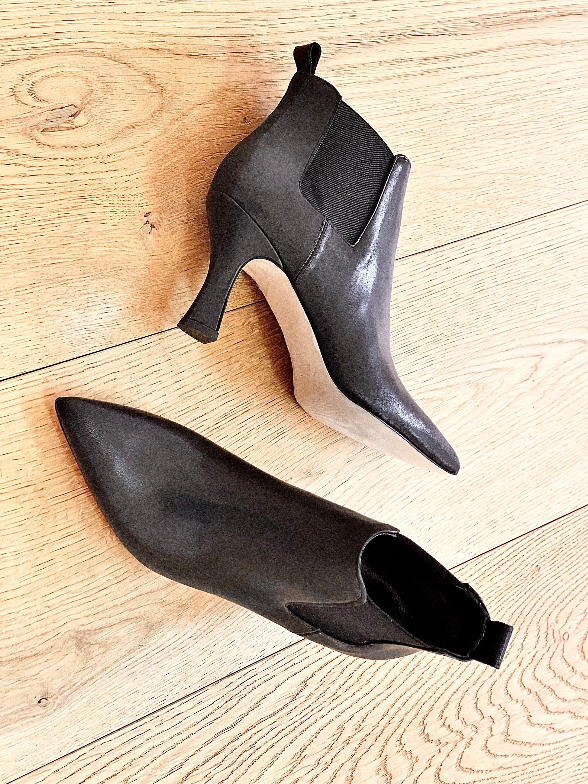 Bottines chelsea à bout plat en cuir avec talon de 8 cm.