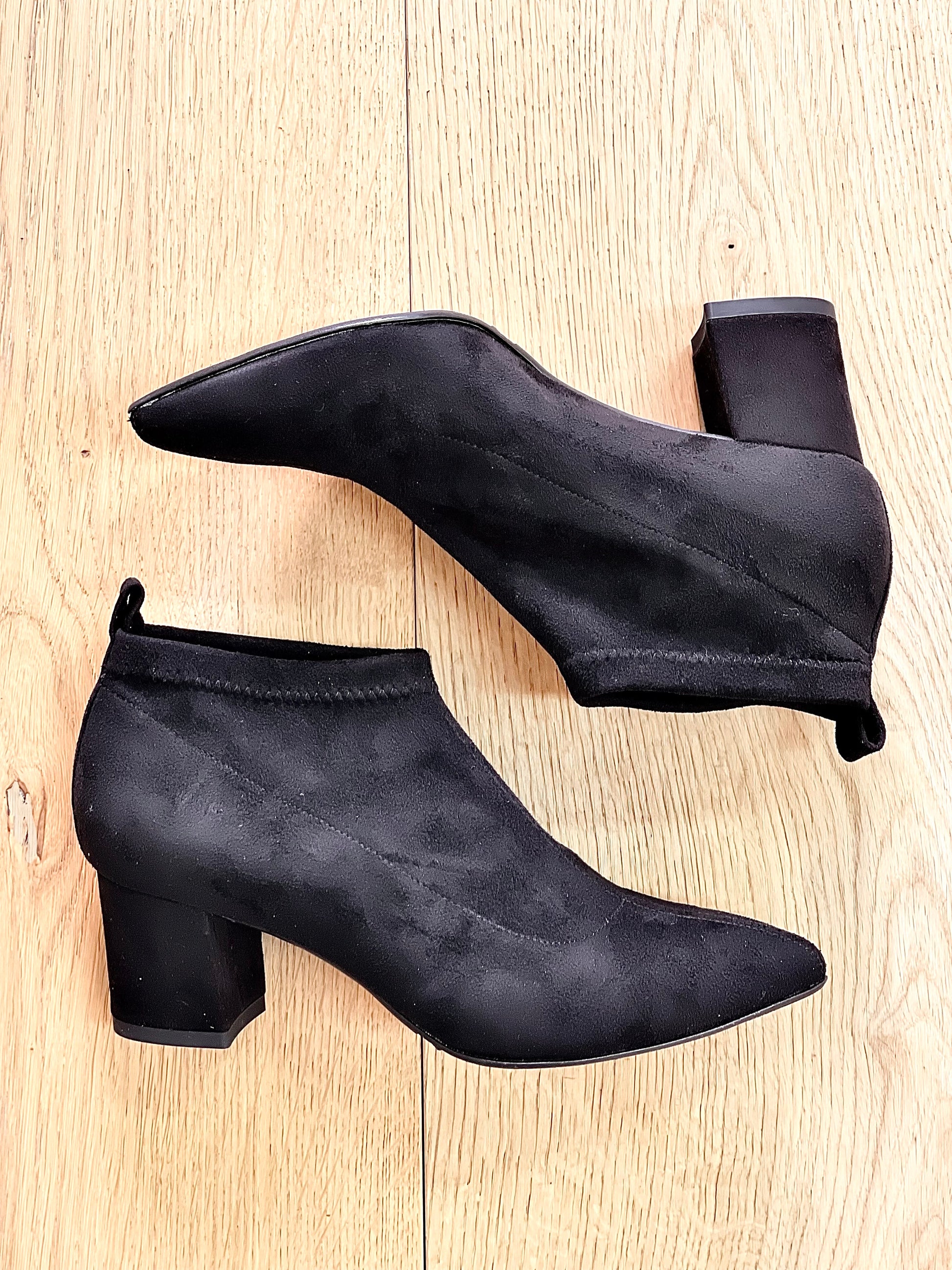 Bottines élastiques avec bout en daim et talon large.