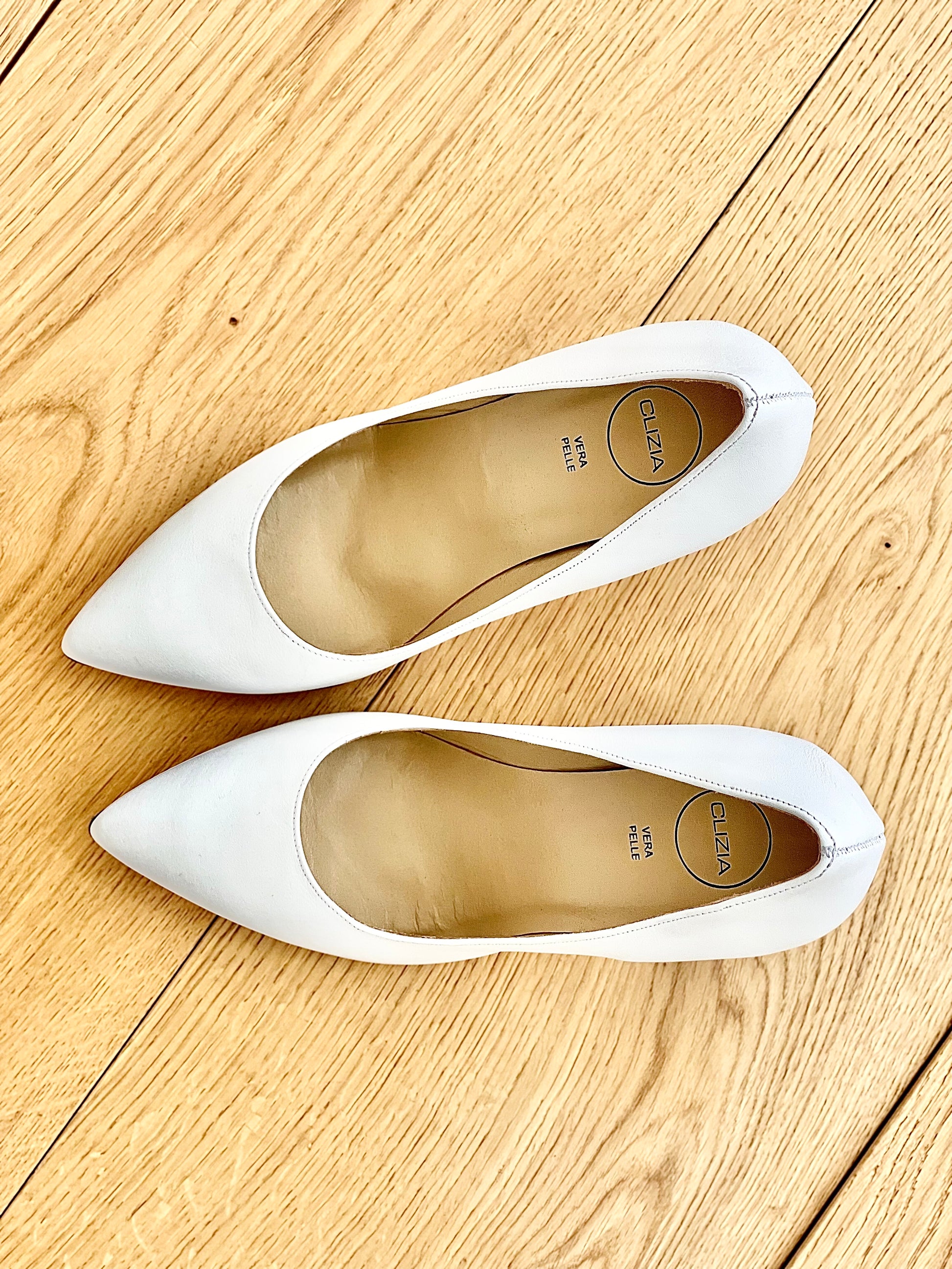 Escarpin à bout pointu en cuir à talon de 8 cm.