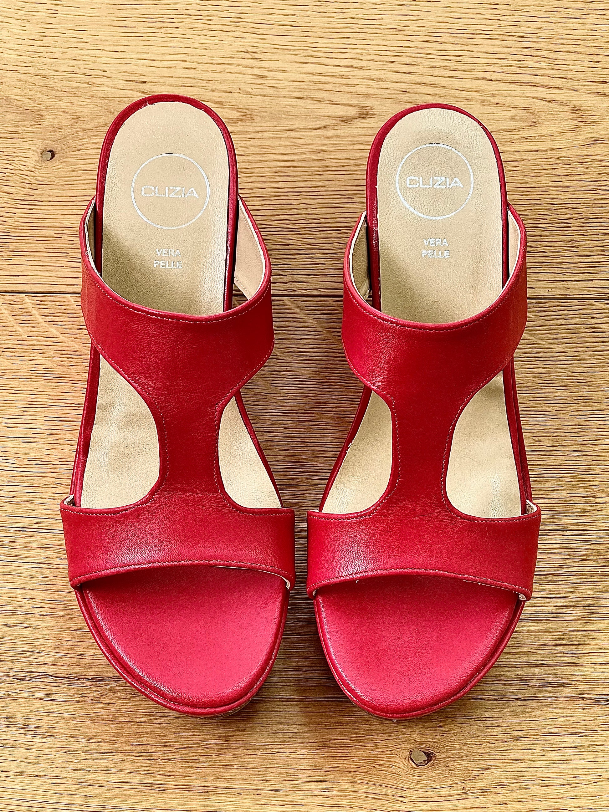 Sandales en cuir en forme de T sur un talon de 8 cm.