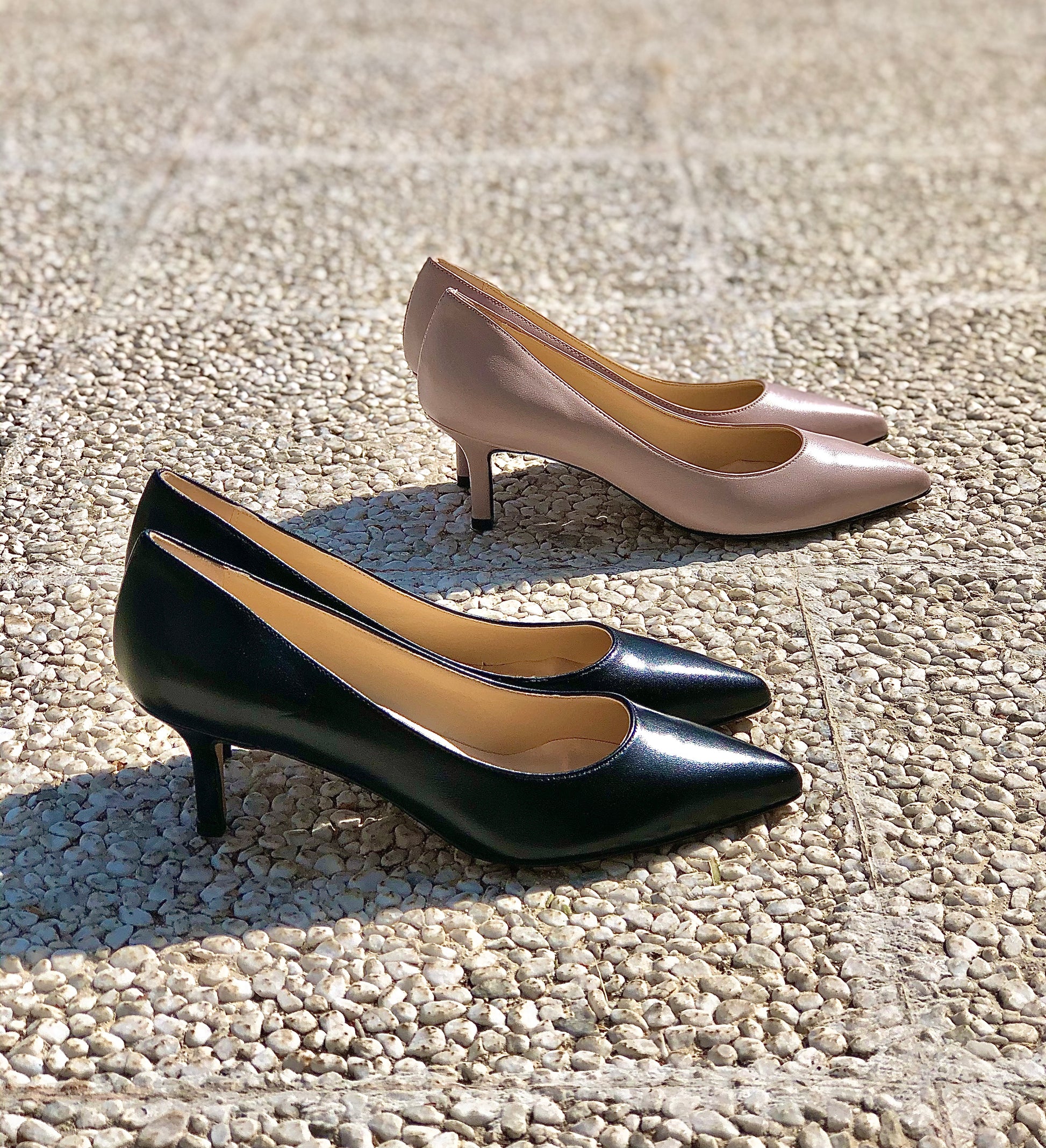 Escarpin à bout pointu en cuir à talon de 6 cm.