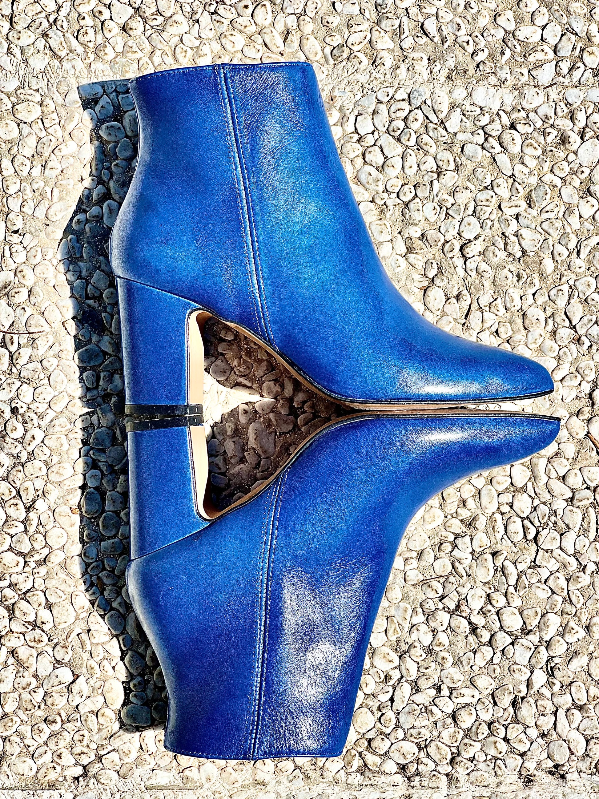 Bottines à bout plat en cuir avec un talon de 75 mm.