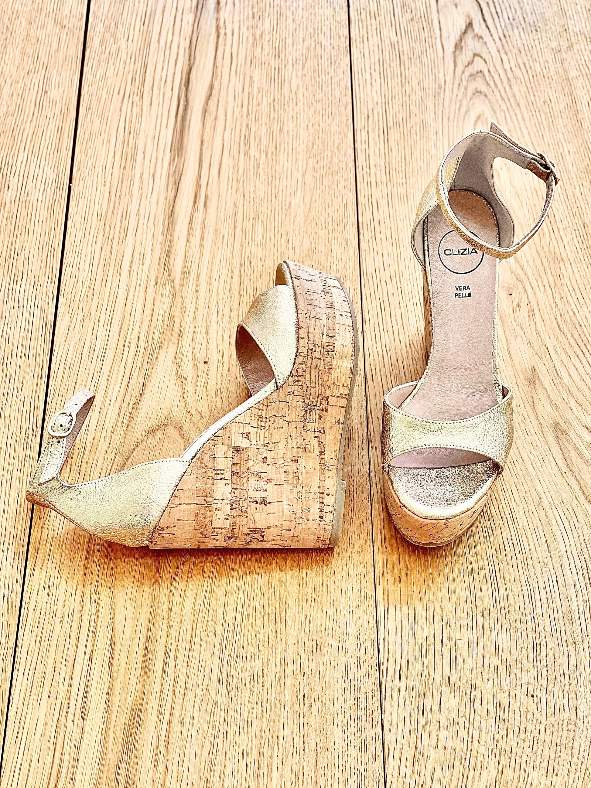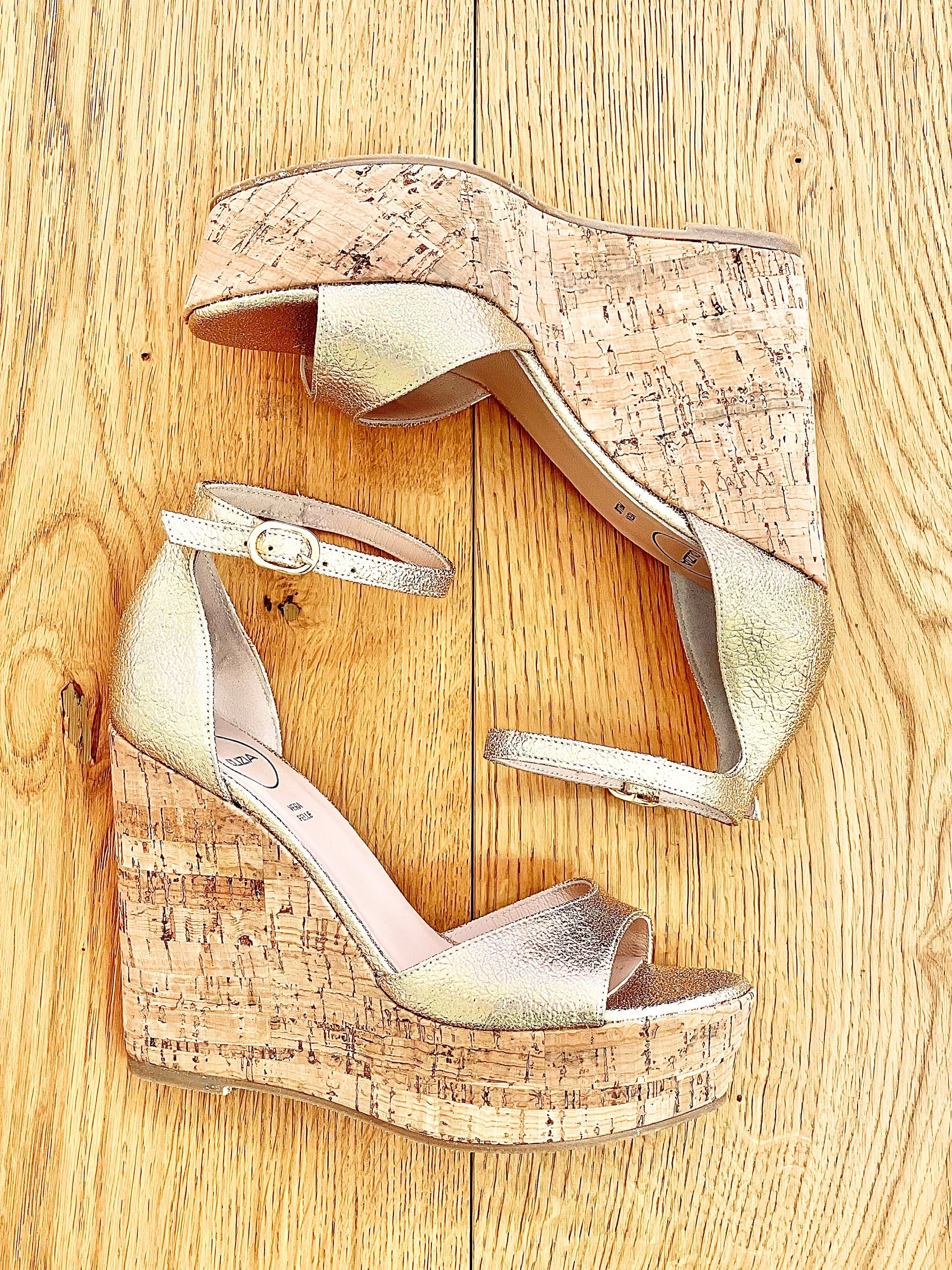 Sandales à bande et talon hauts sur talon compensé en liège de 11,5 cm.