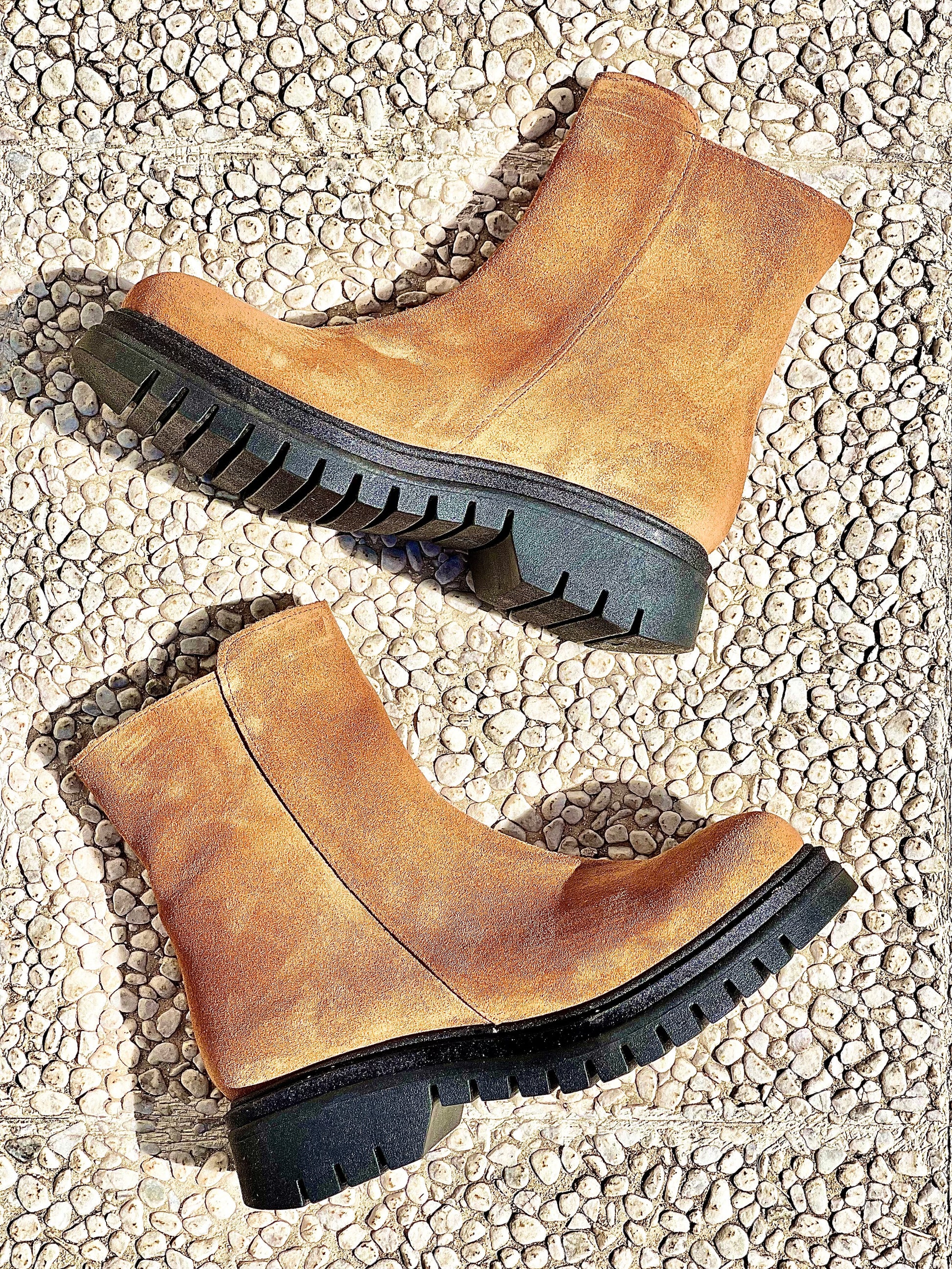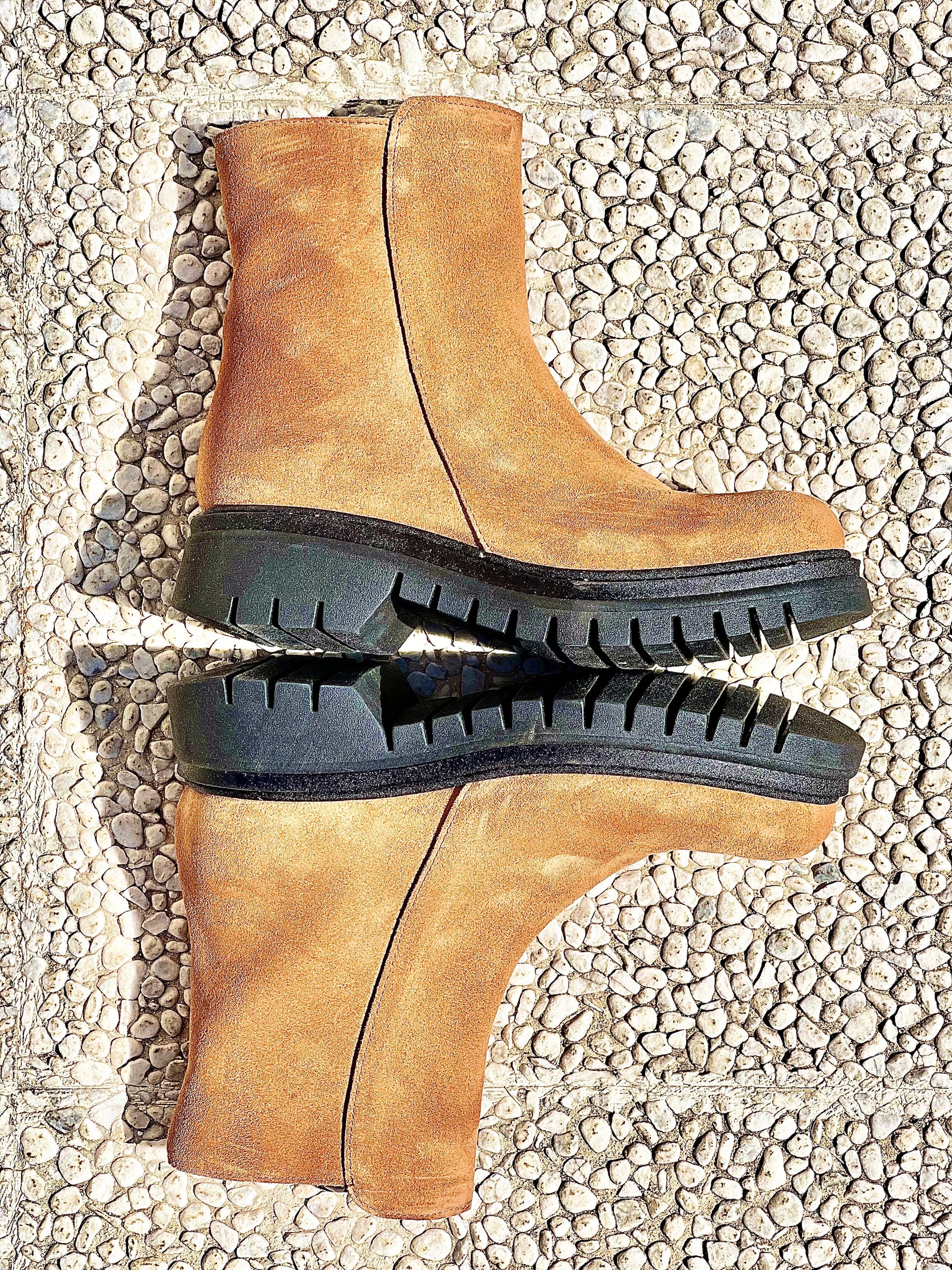 Bottines en daim avec fermeture éclair interne et talon de 3 cm.