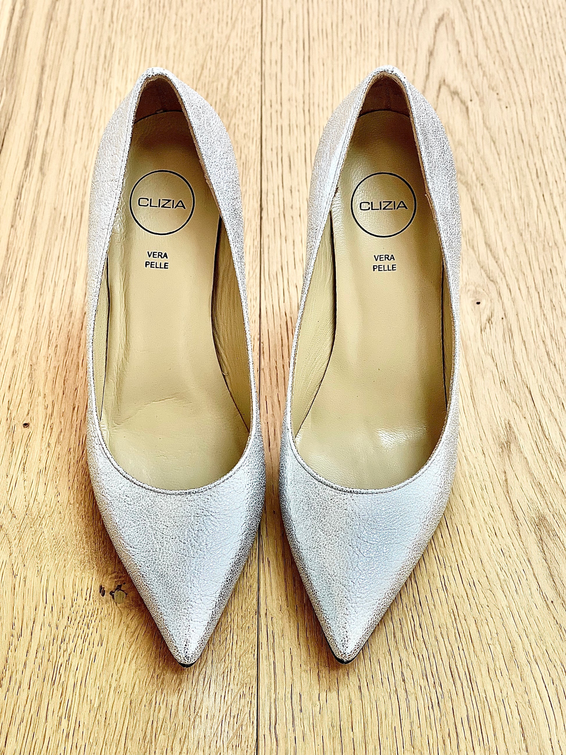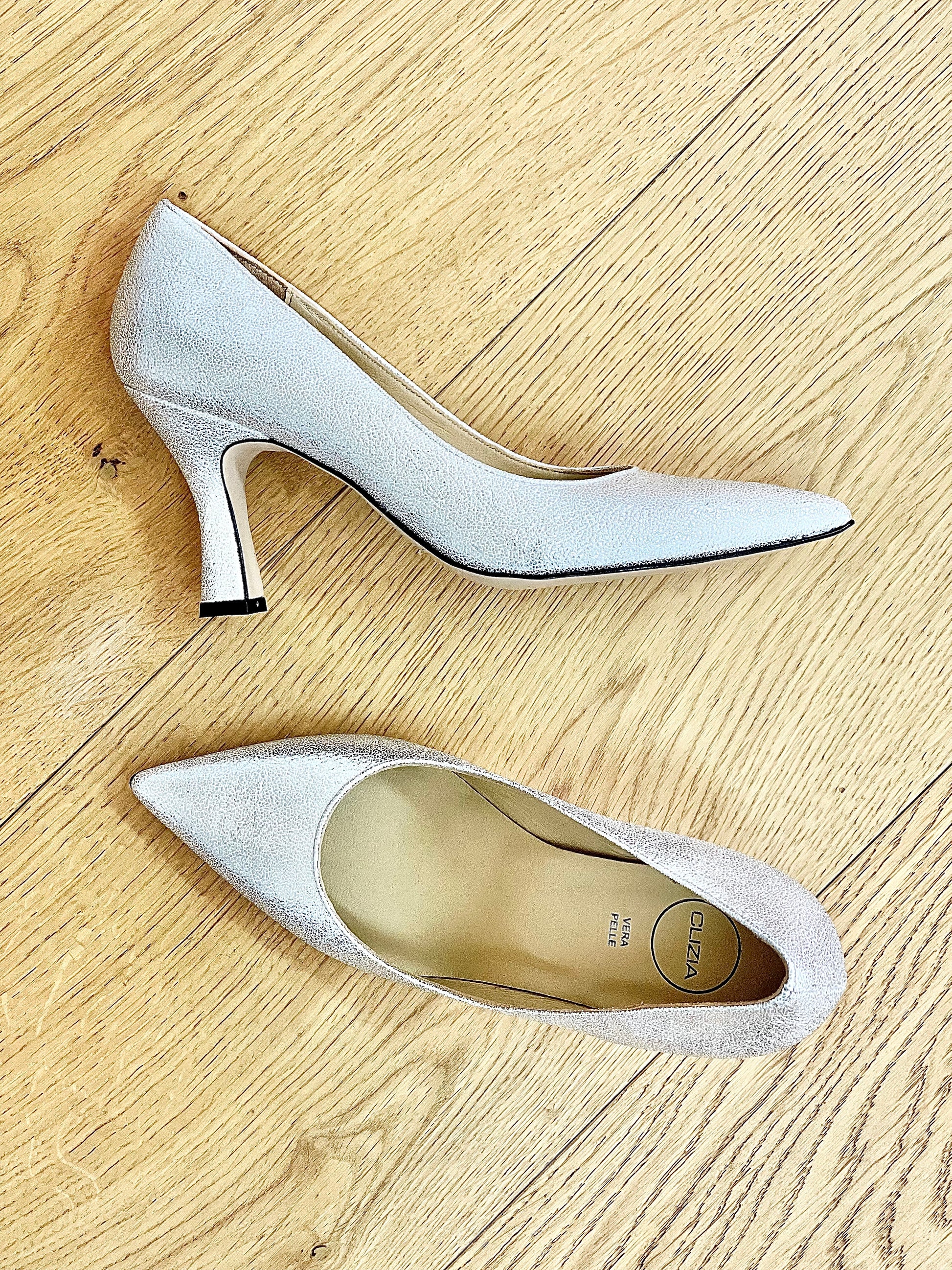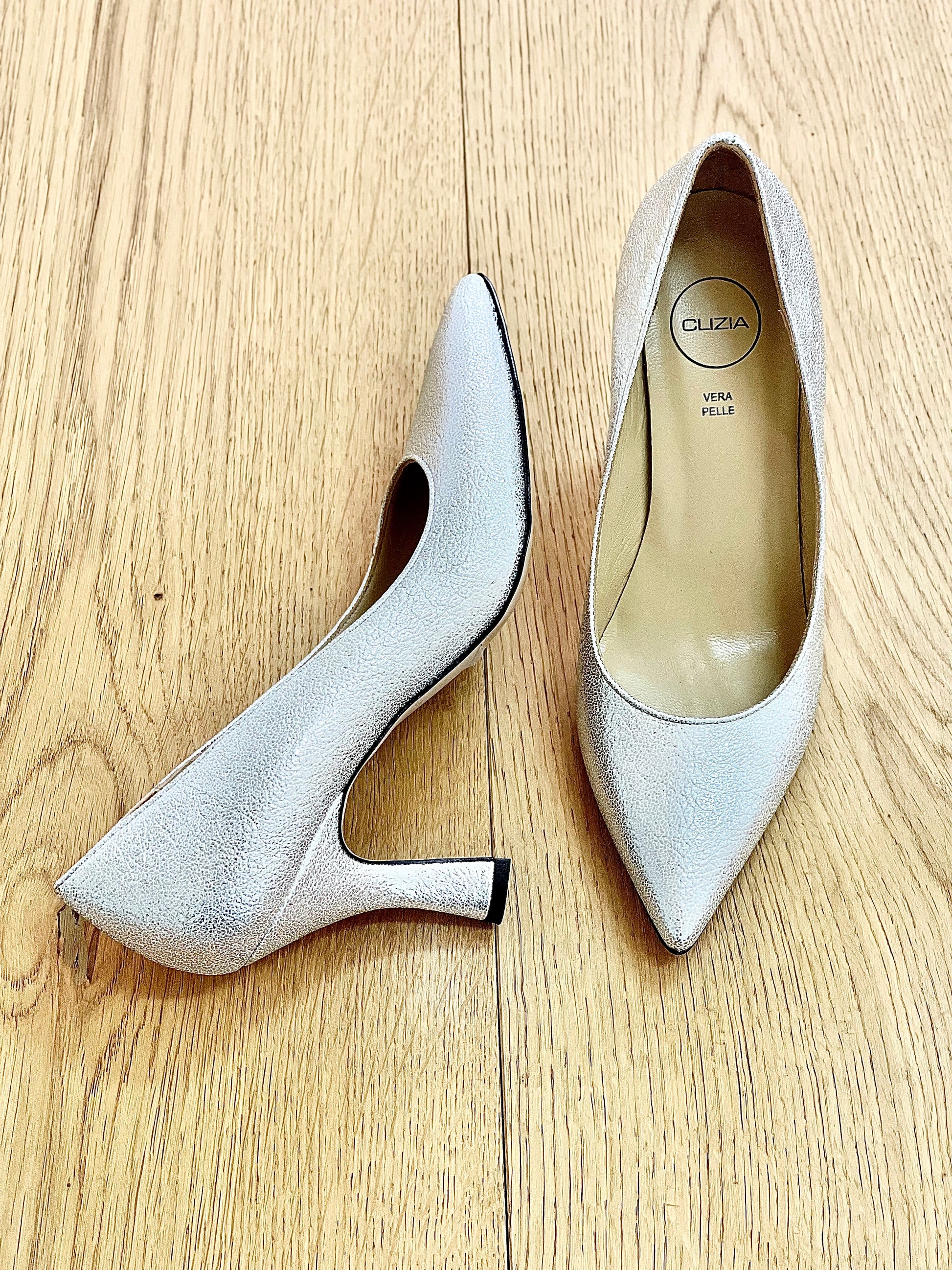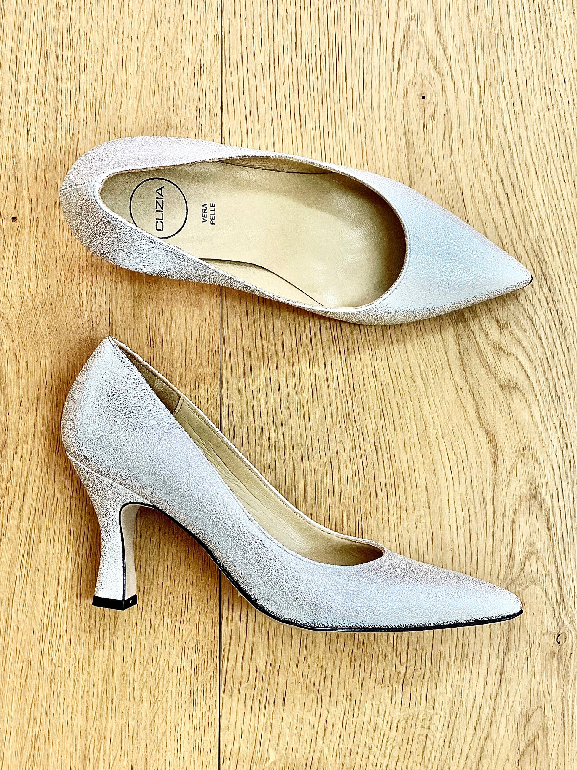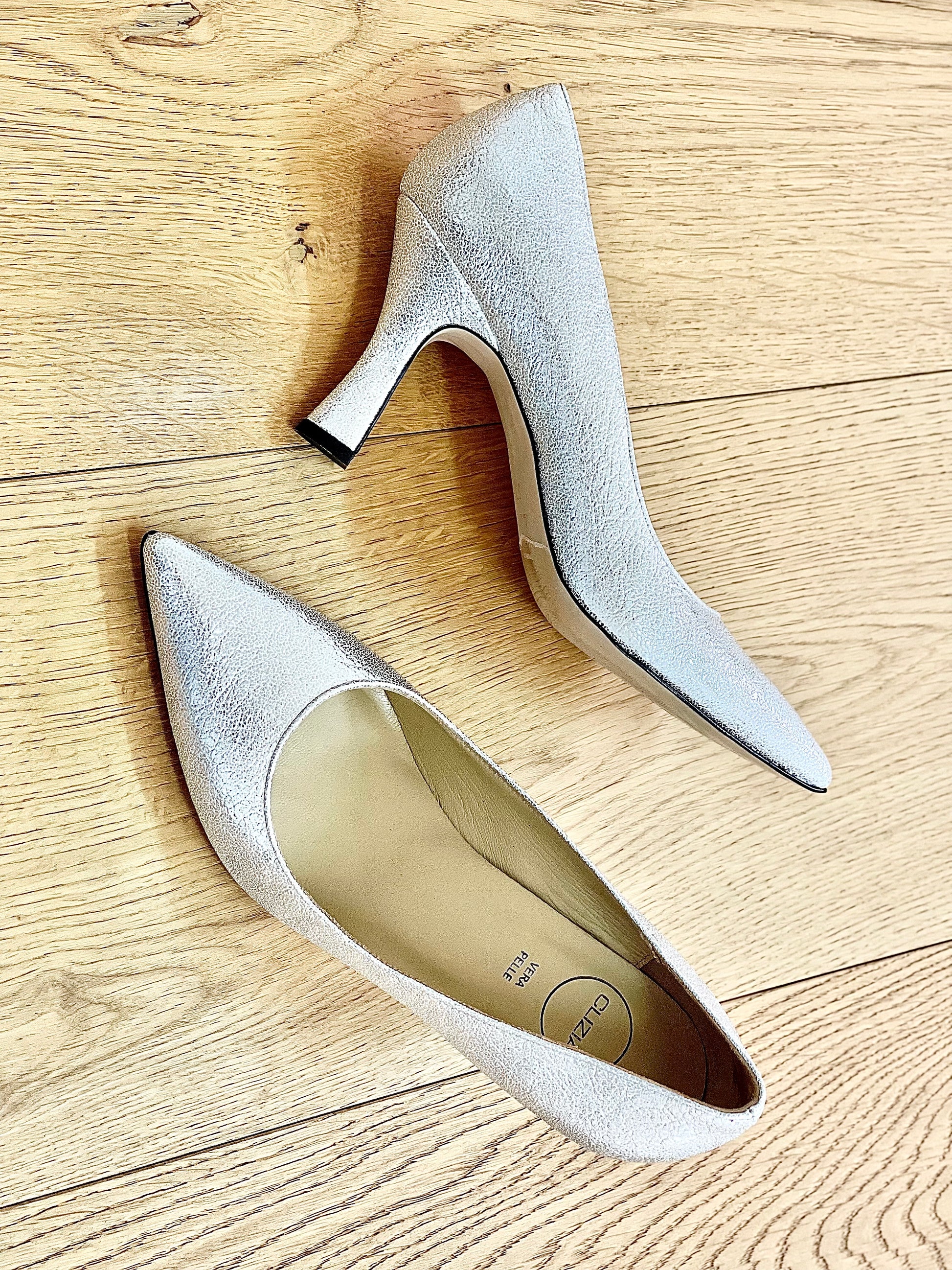 Escarpins laminés à bout pointu avec talon bobine de 8 cm.