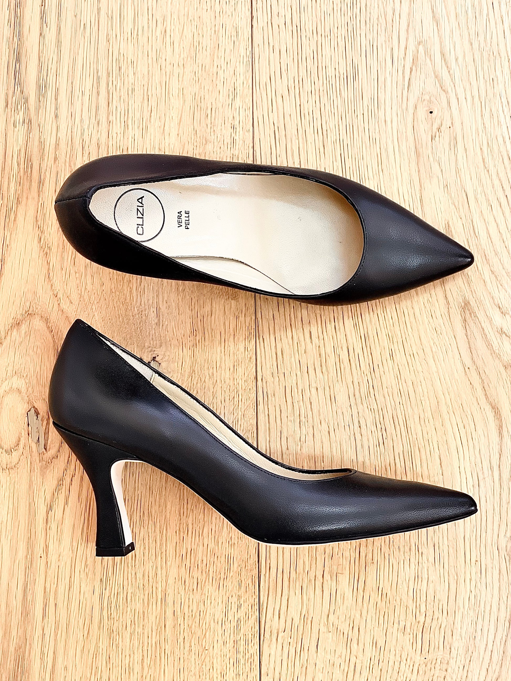 Escarpin à bout pointu en cuir avec talon bobine de 8 cm.