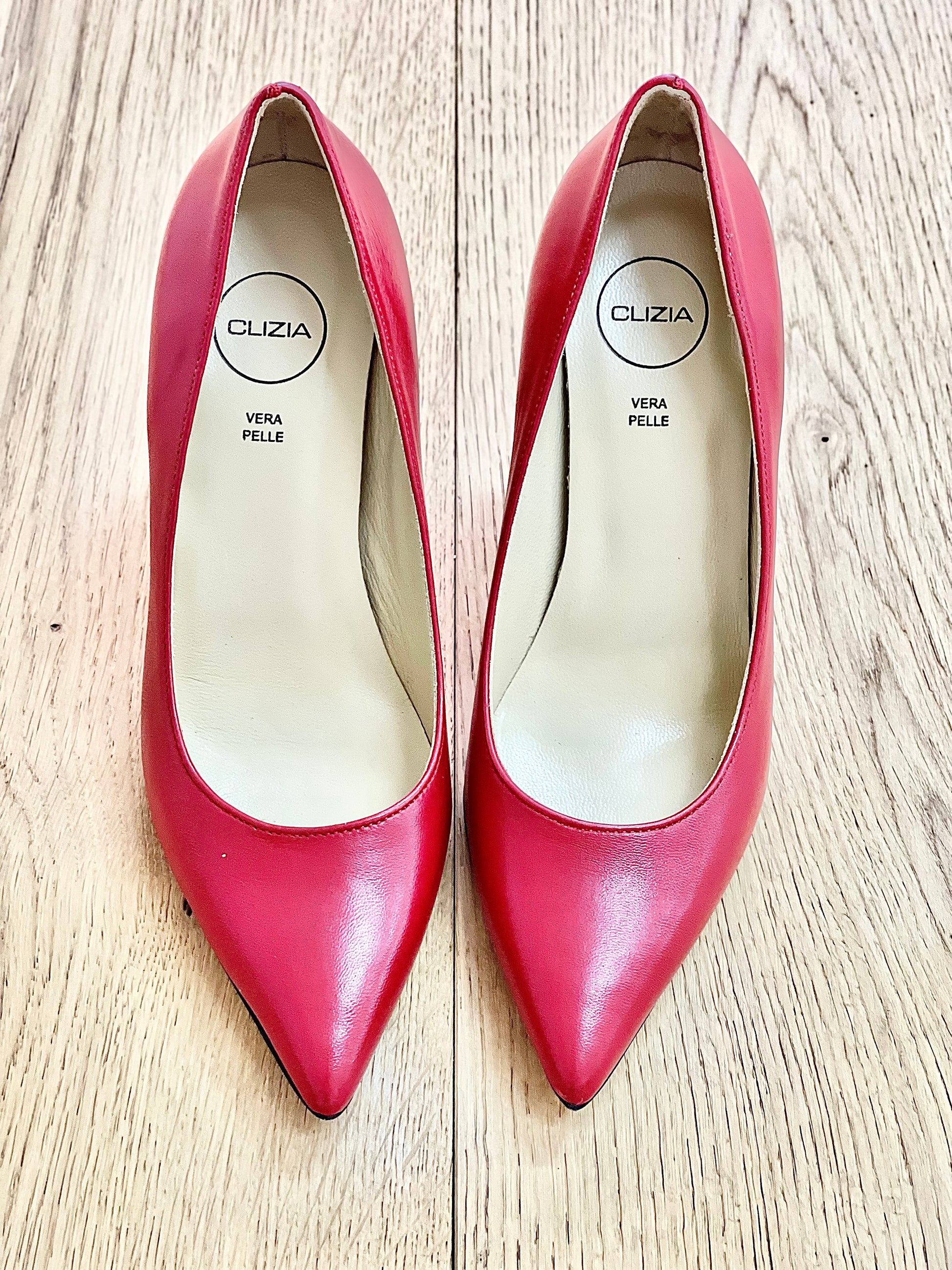 Escarpin à bout pointu en cuir avec talon bobine de 8 cm.