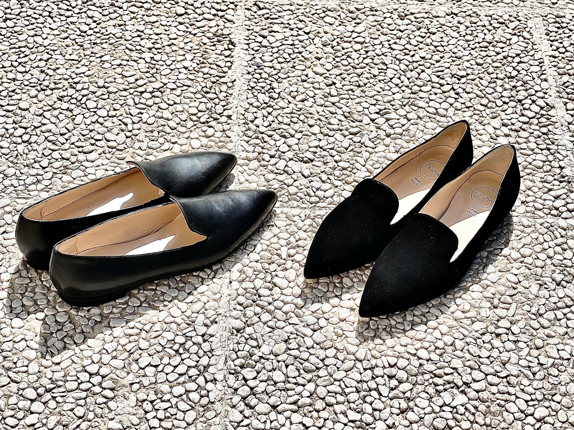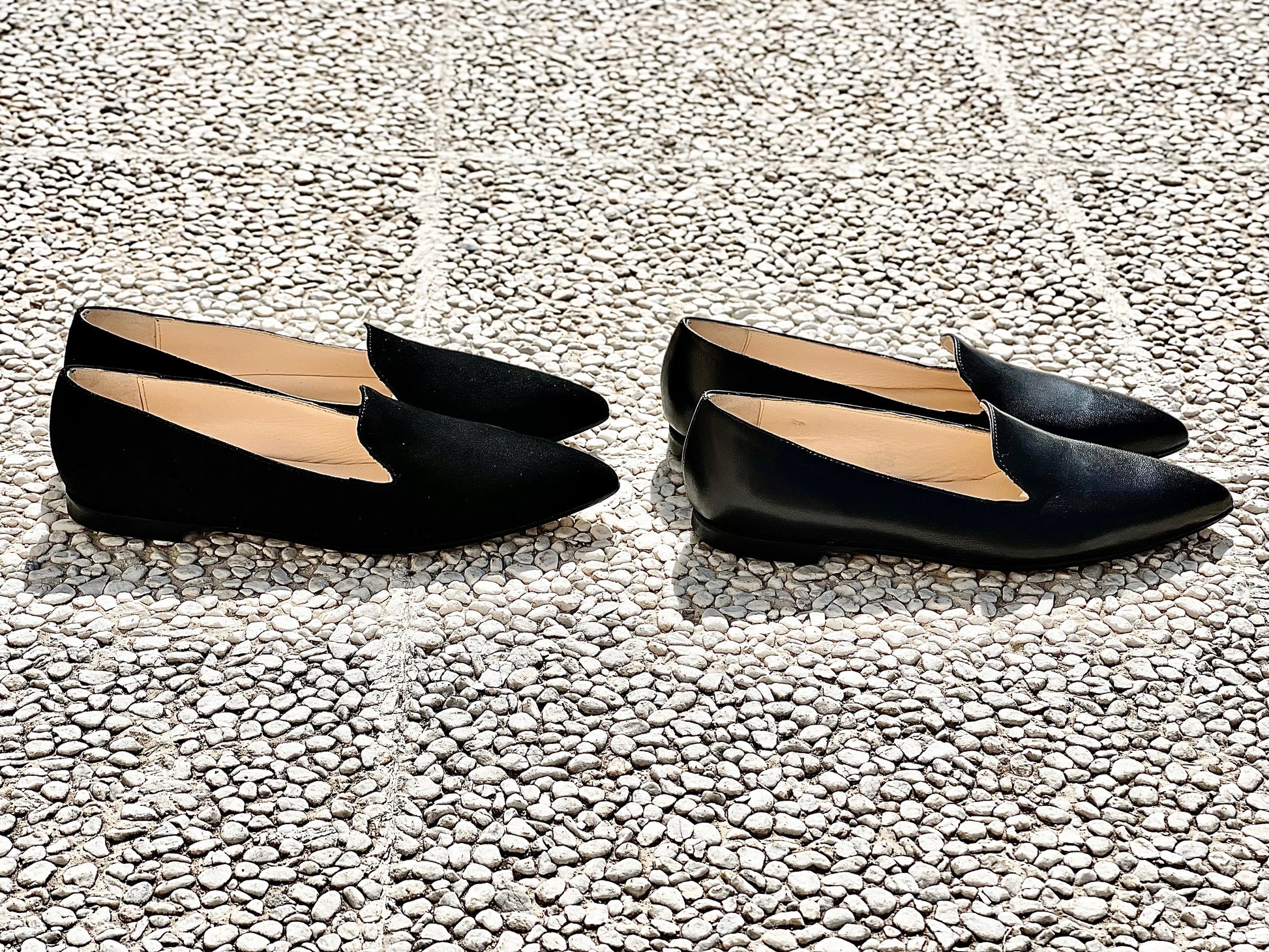 Ballerines de style pantoufle à bout pointu en cuir ou en daim.
