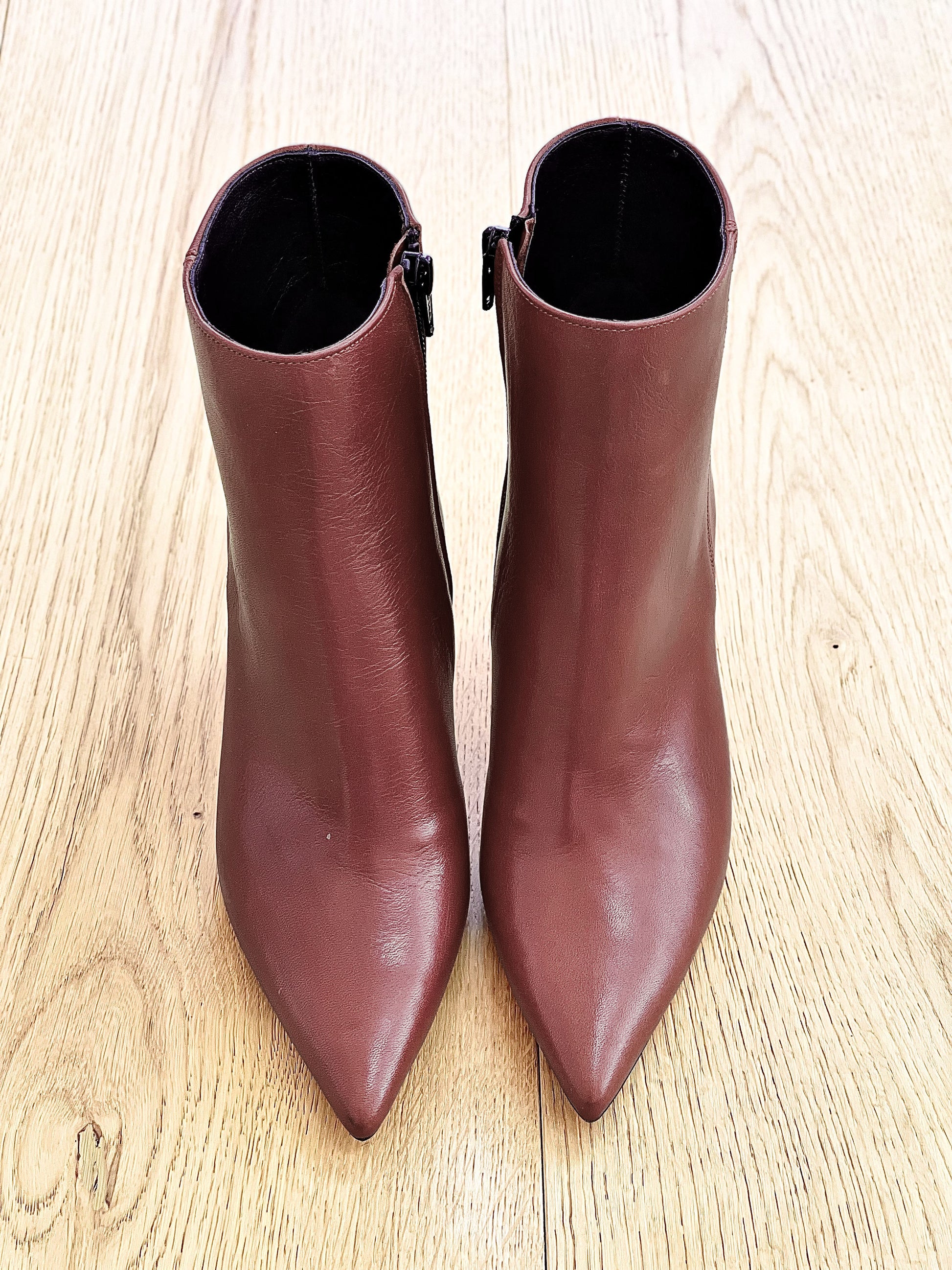 Bottines à bout pointu en cuir avec talon bobine de 8 cm.