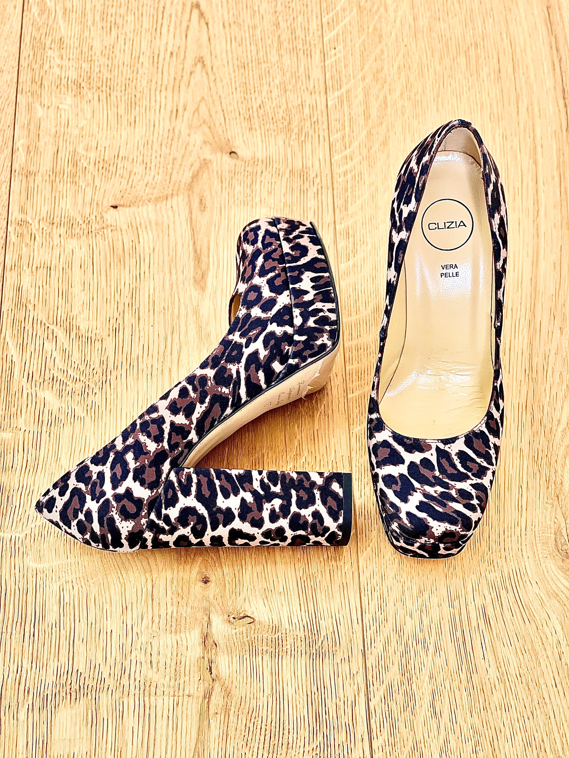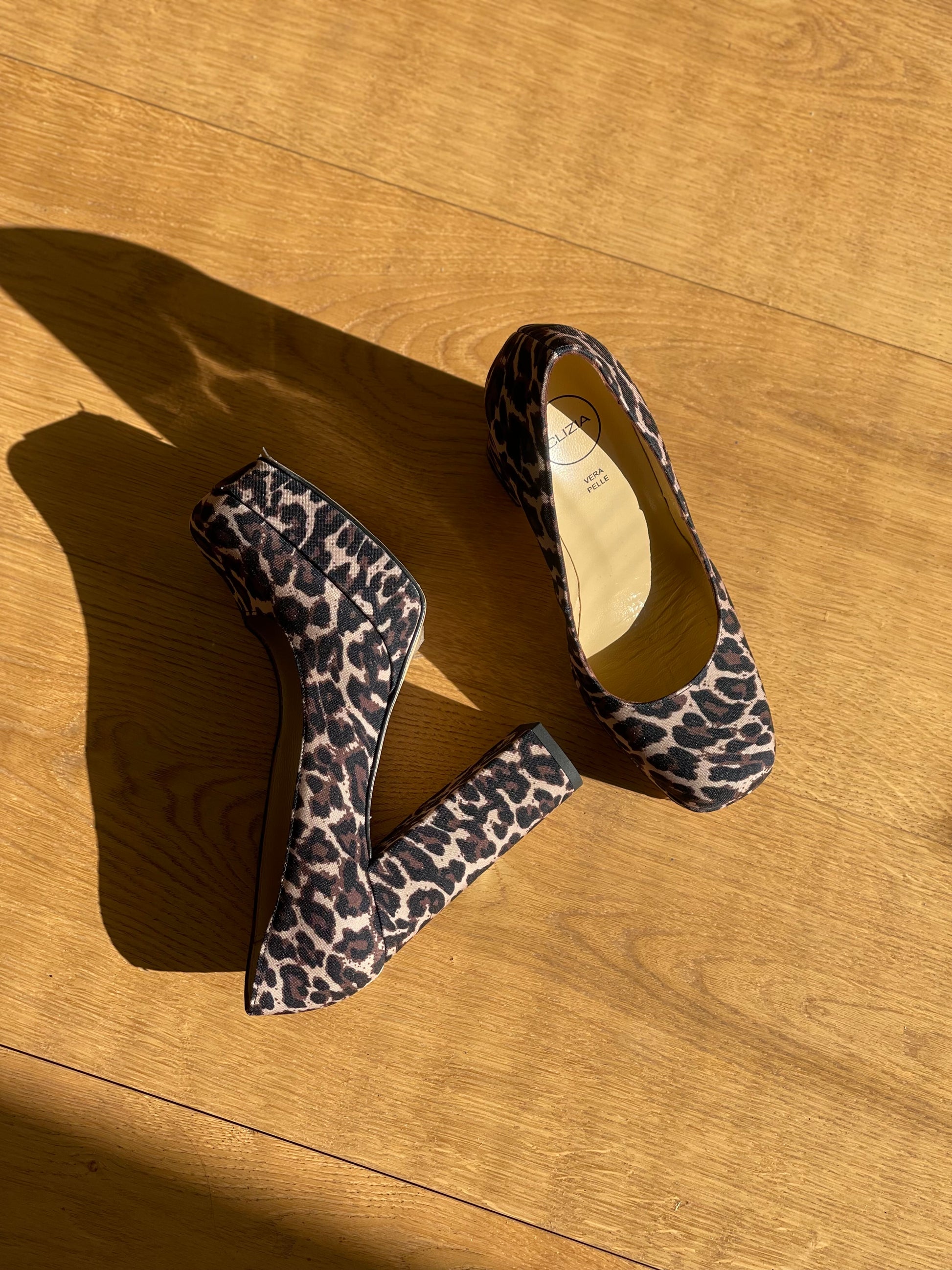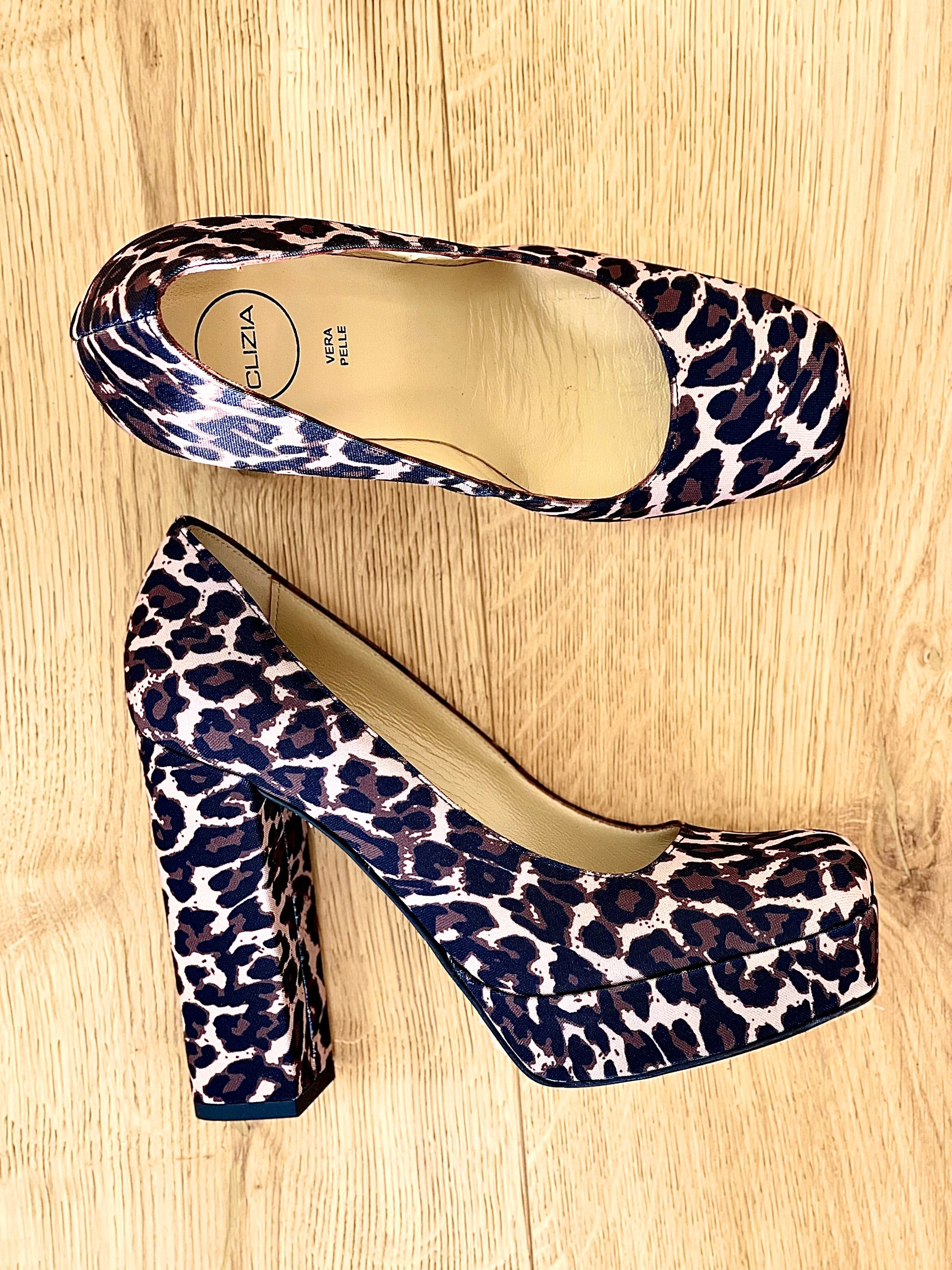 Escarpins hauts semi-carrés à talon large animal et plateforme.