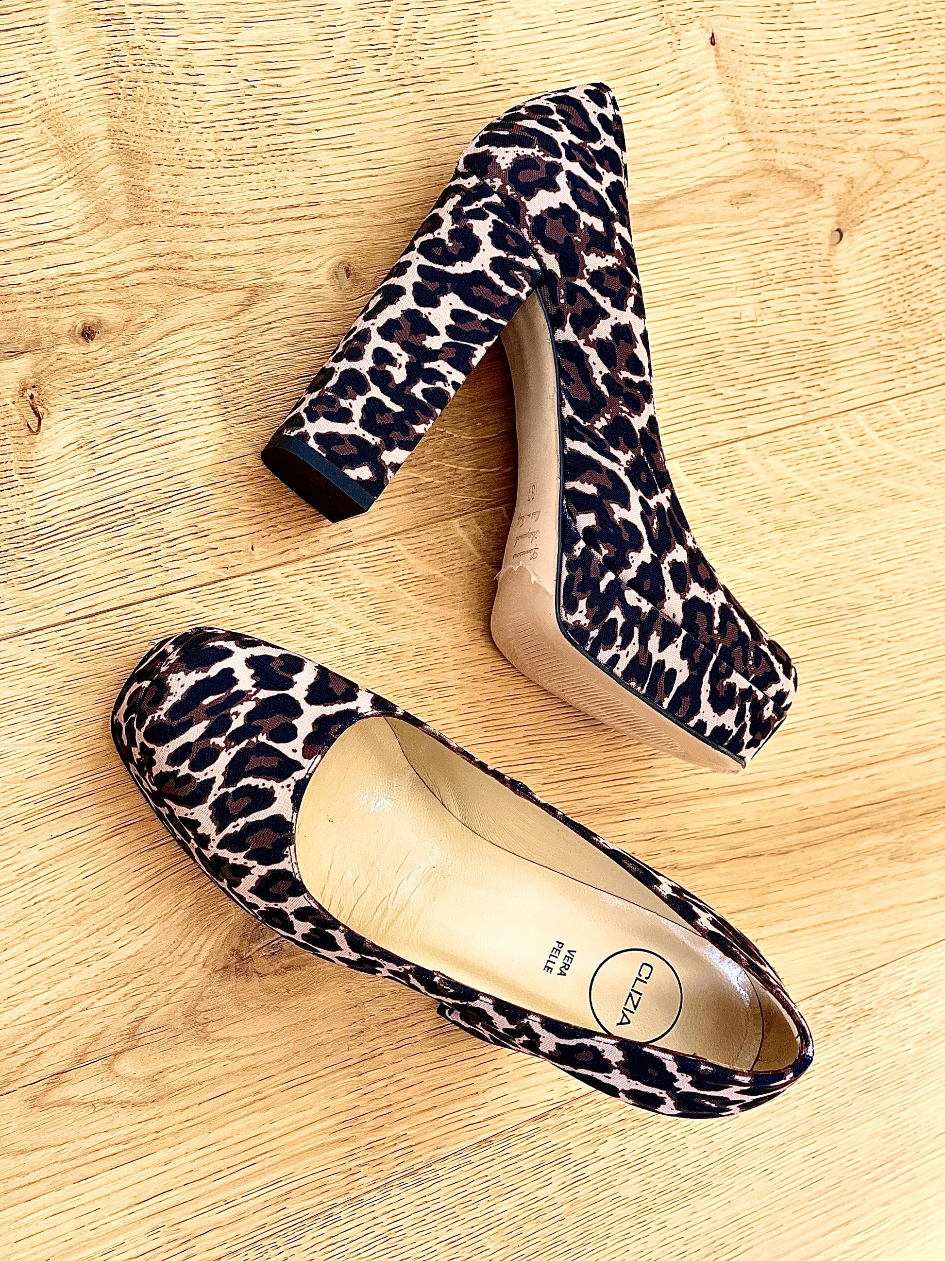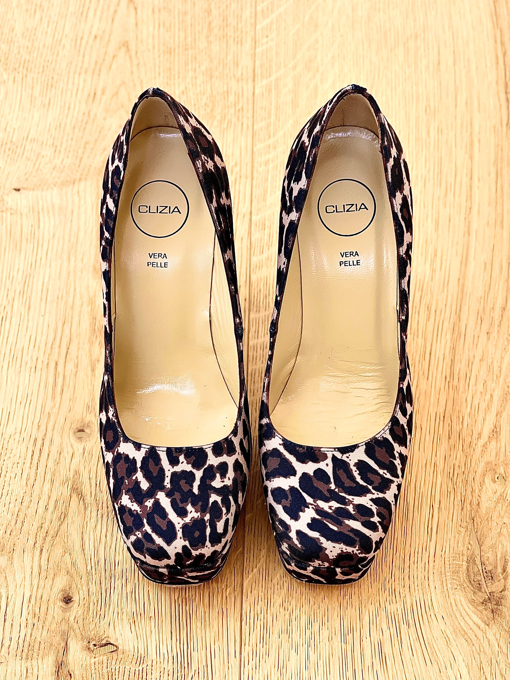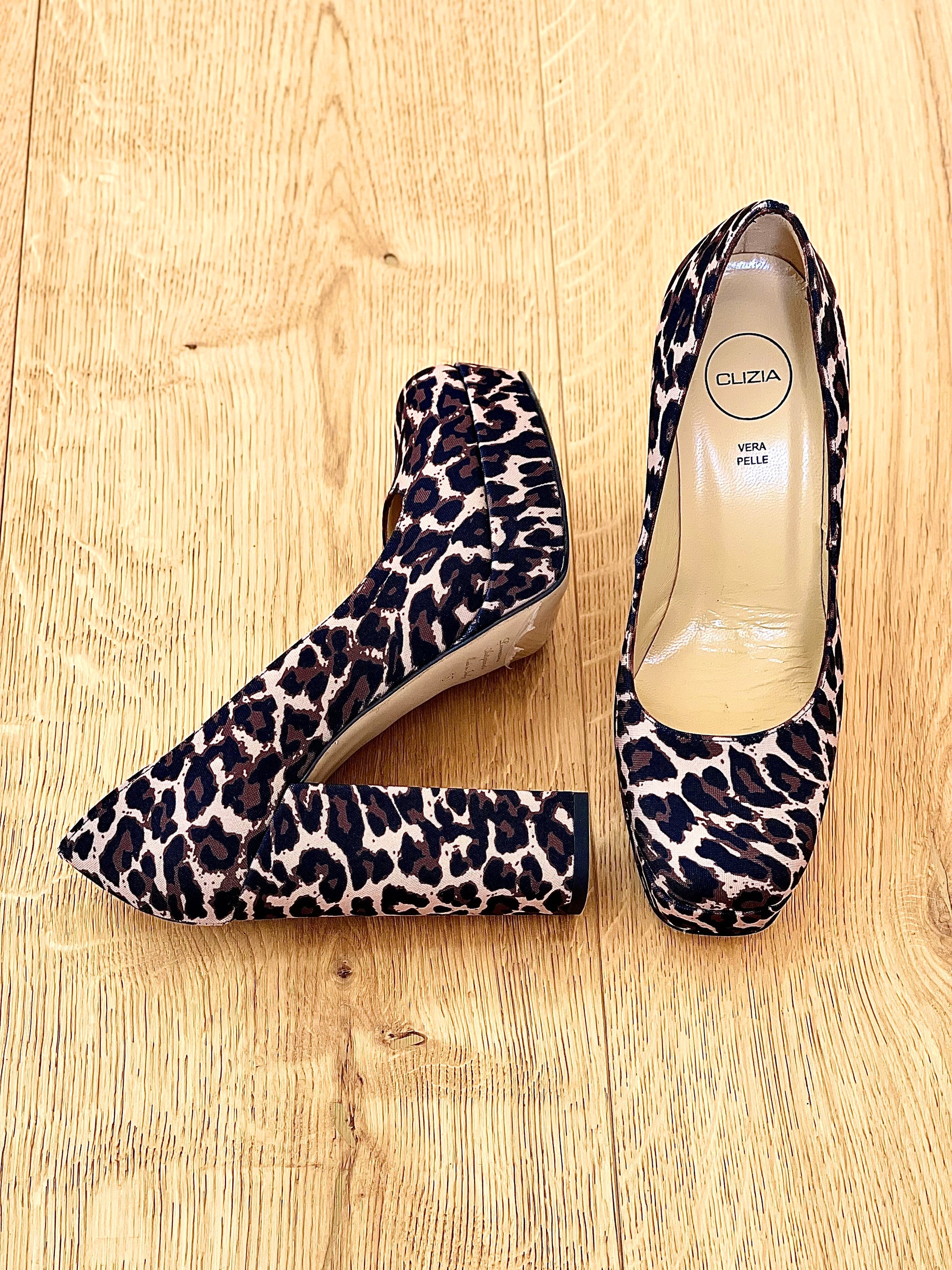 Escarpins hauts semi-carrés à talon large animal et plateforme.