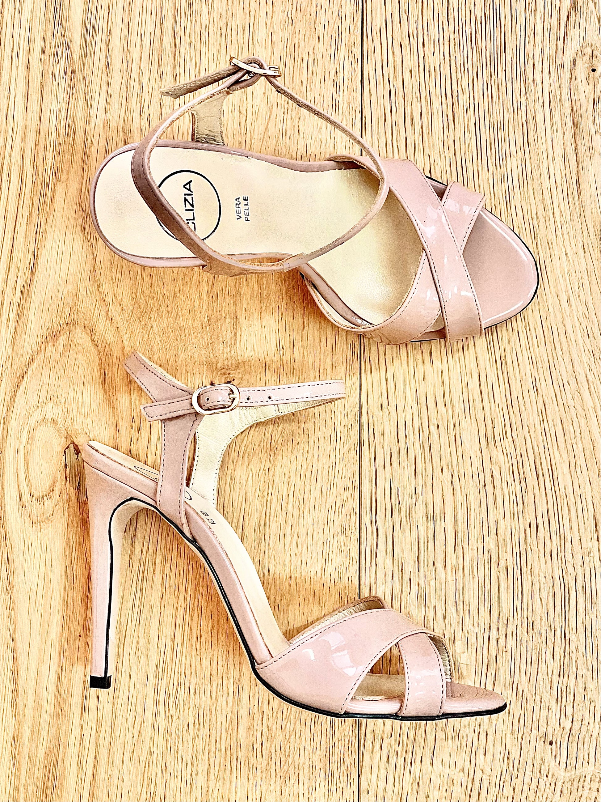 Sandales hautes croisées et à bride cheville, talon de 10 cm.