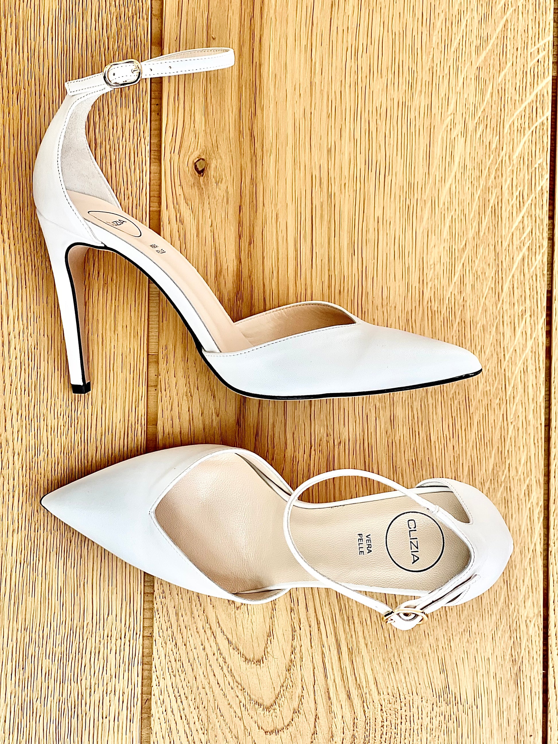 Escarpin à bout pointu et à talon en V avec talon aiguille de 10 cm de haut.