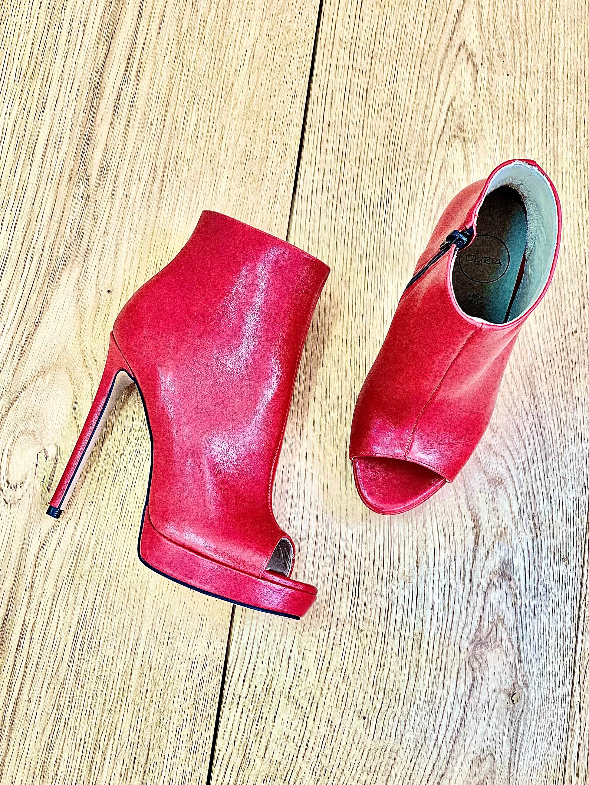 Bottines en cuir avec un talon de 12 cm et une plateforme de 2 cm.