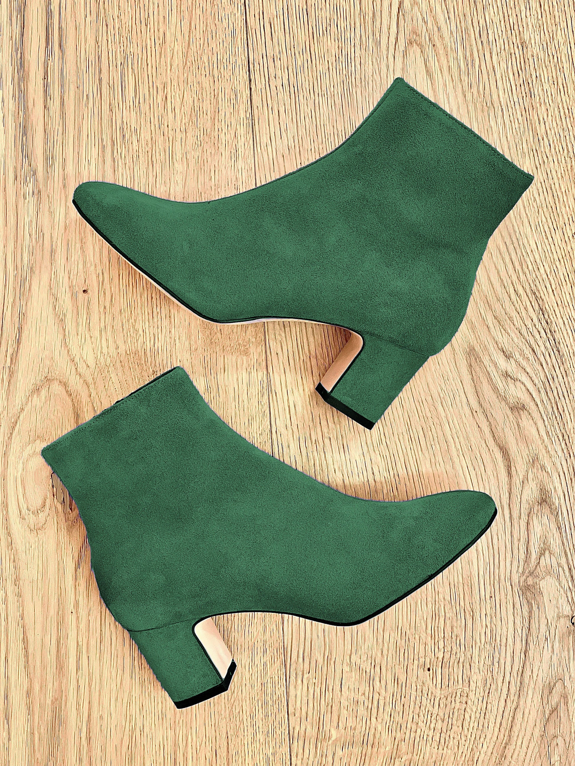 Bottines en daim à bout rond et à talon large.