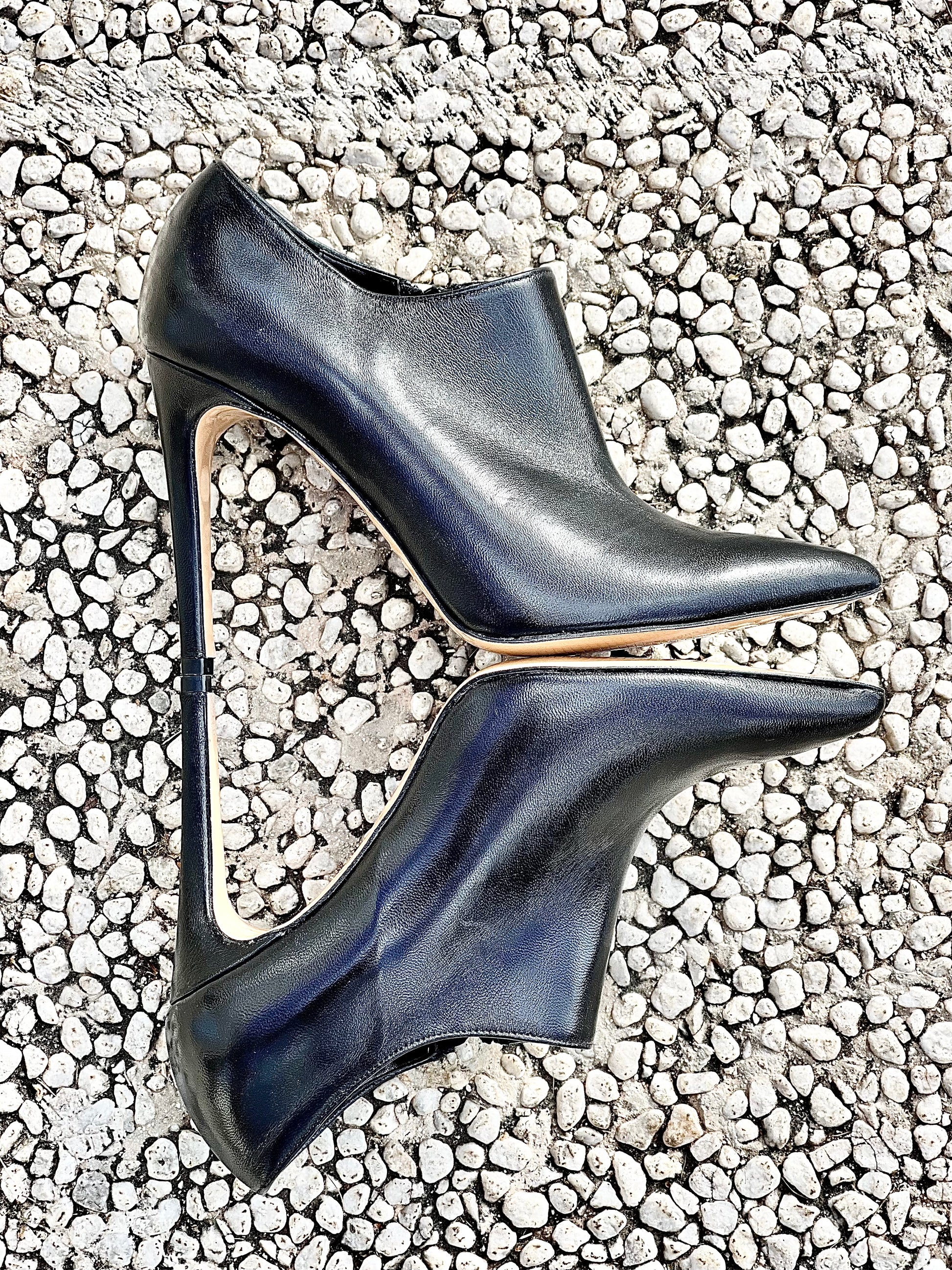 Bride de cheville en cuir à bout pointu avec un talon à pointes de 10 cm.