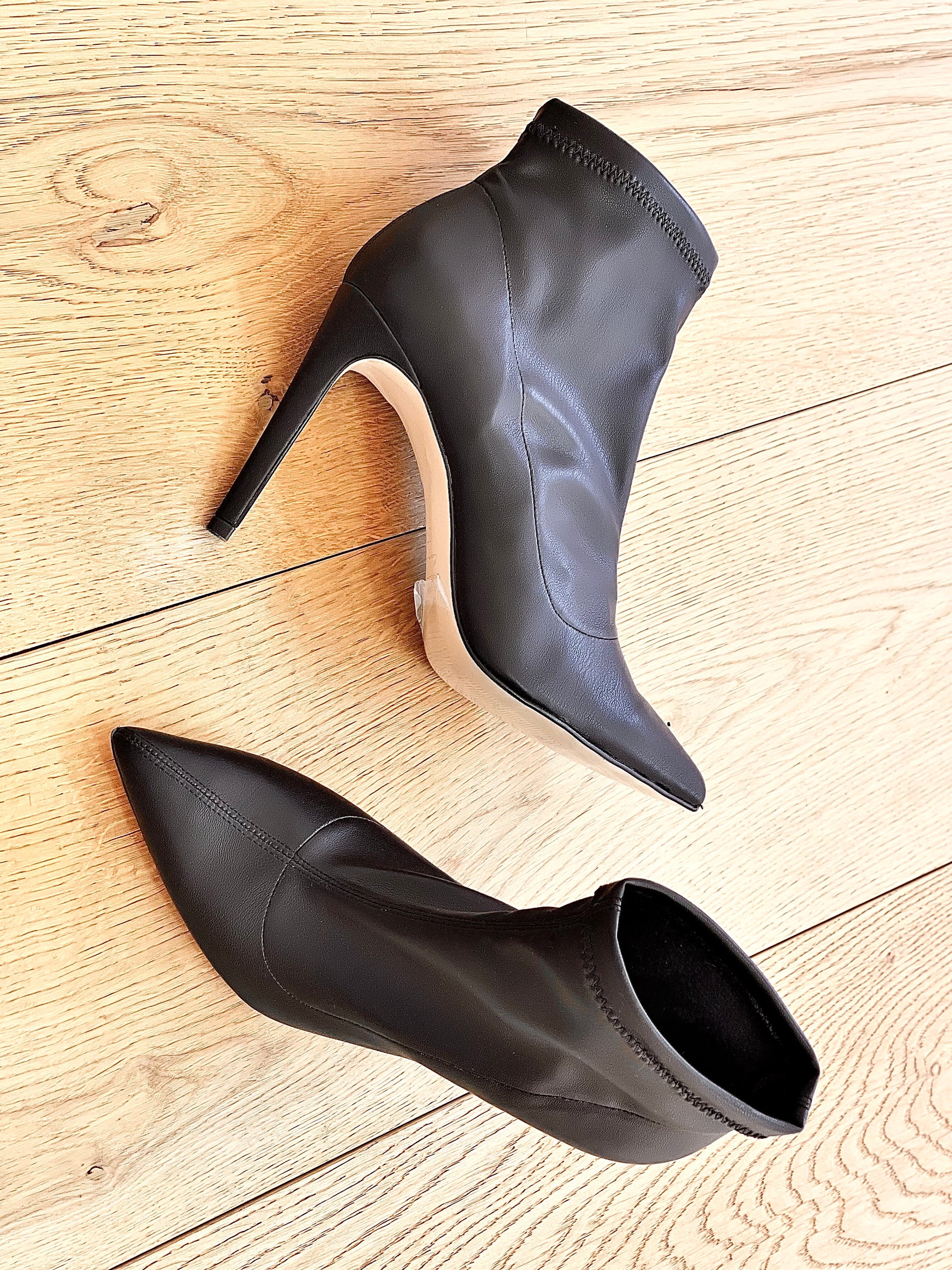 Bottines hautes et élastiques avec un talon aiguille de 10 cm.