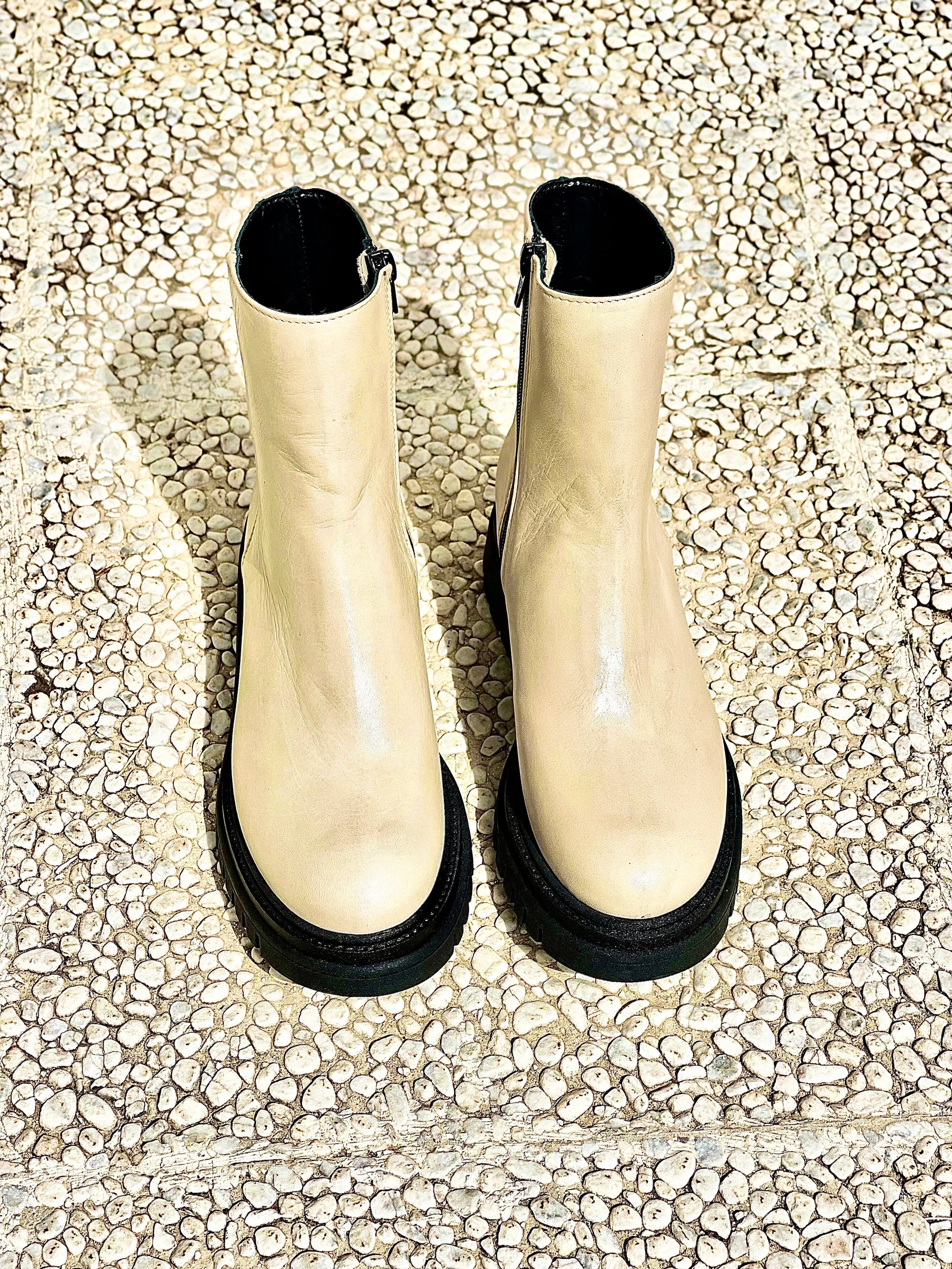 Bottines en cuir avec fond en caoutchouc et talon de 3 cm.