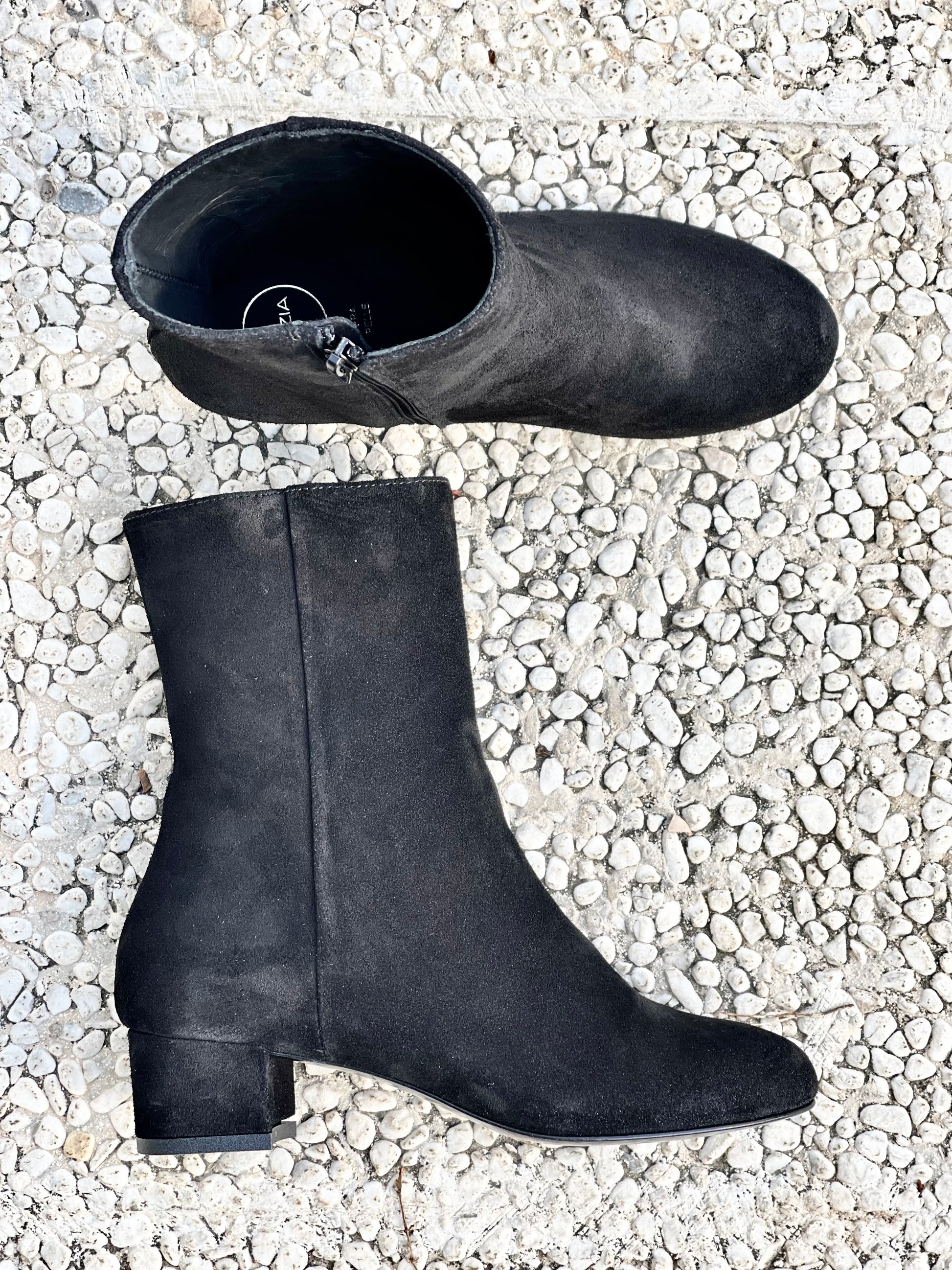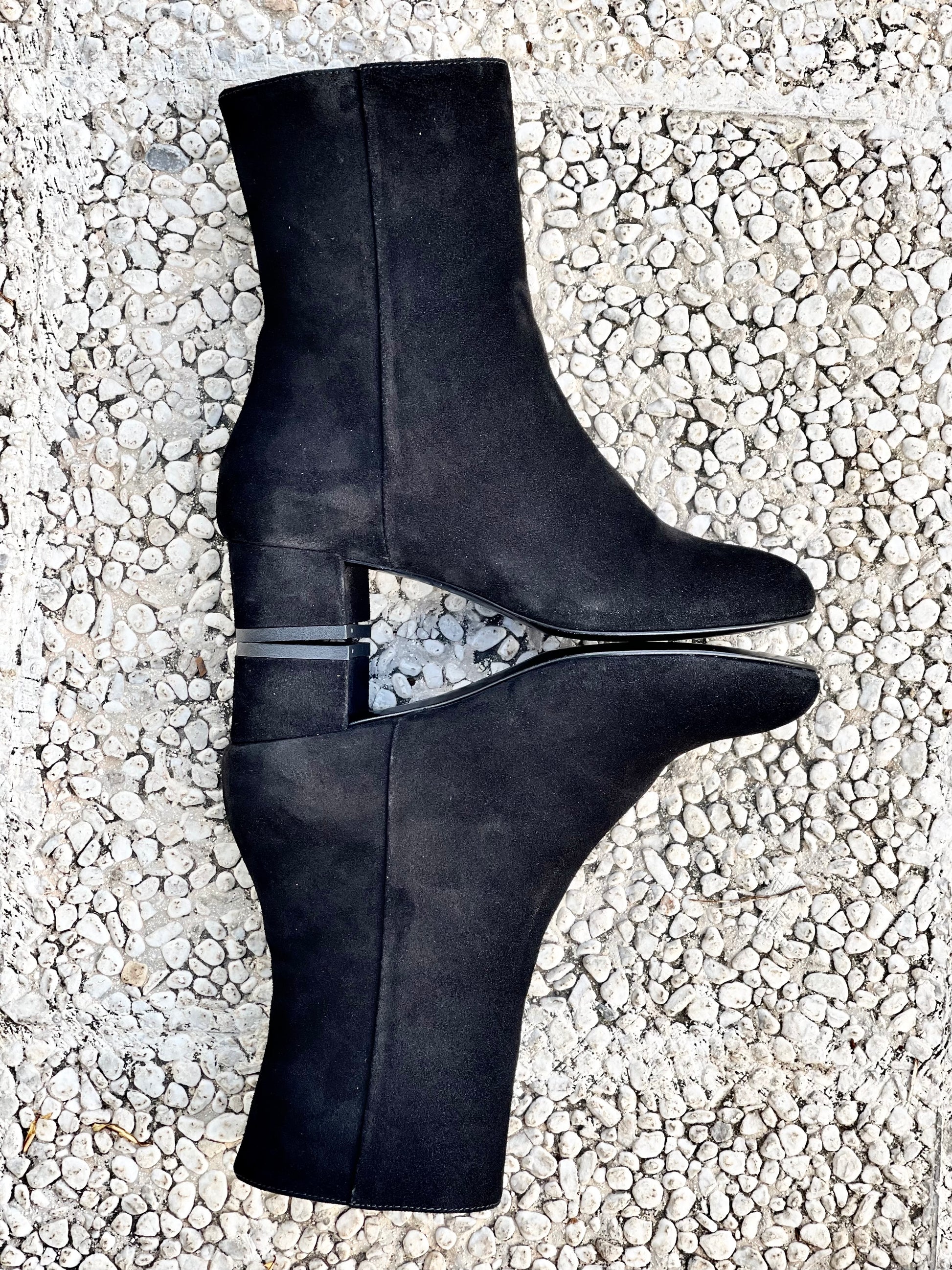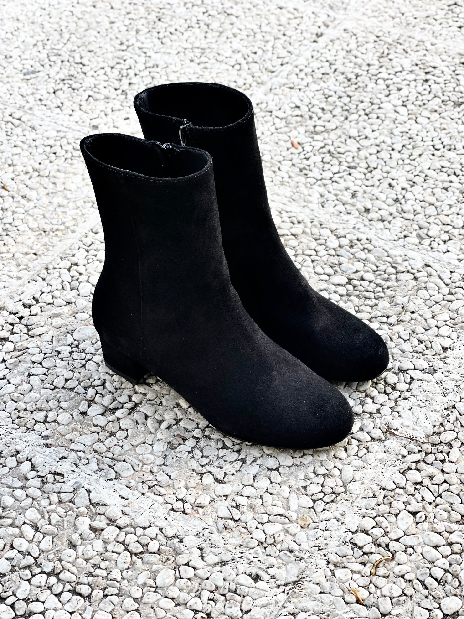 Bottines en daim à bout rond avec un talon large de 4 cm.