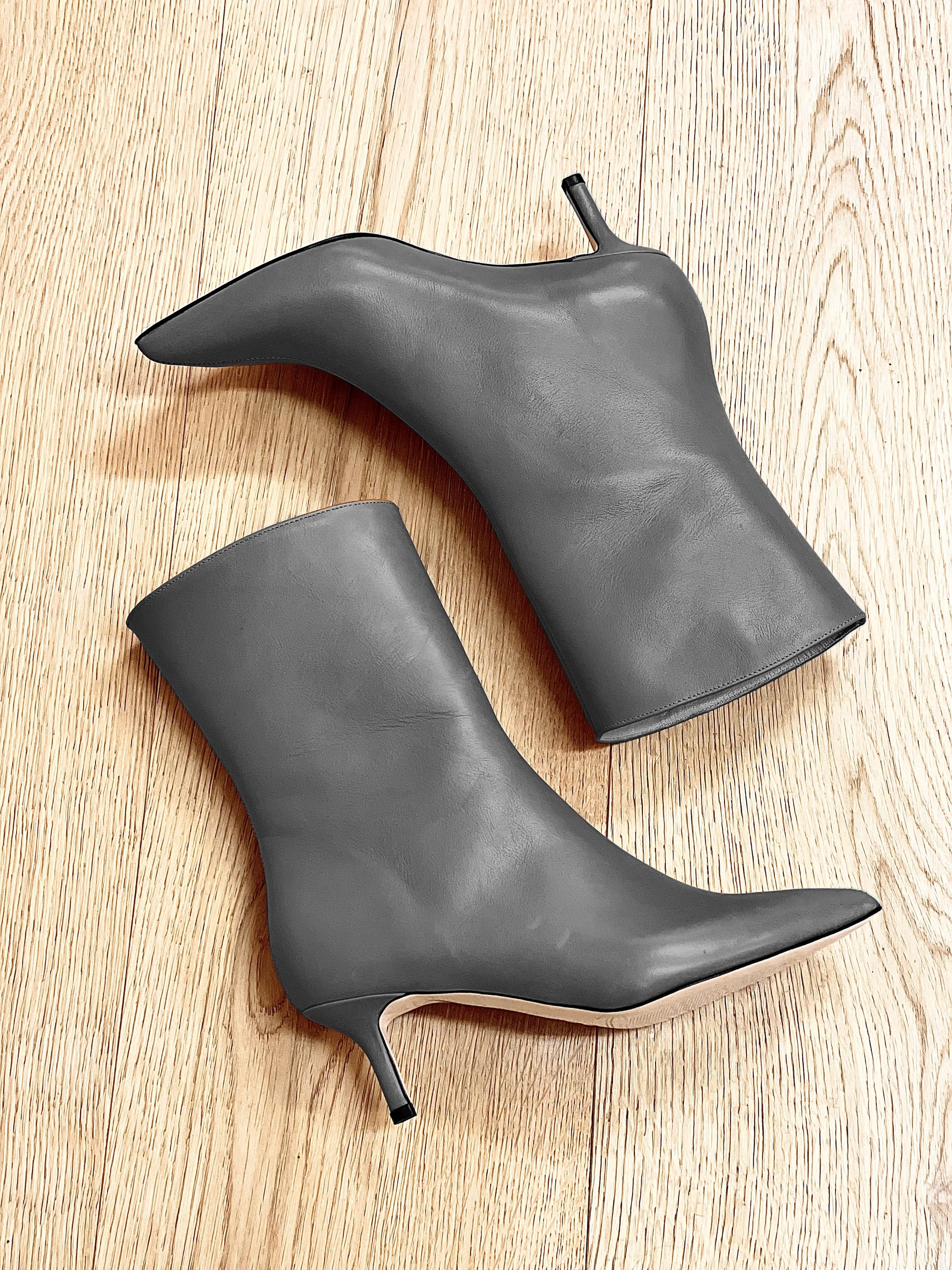 Bottines tubulaires à talon fin en cuir.