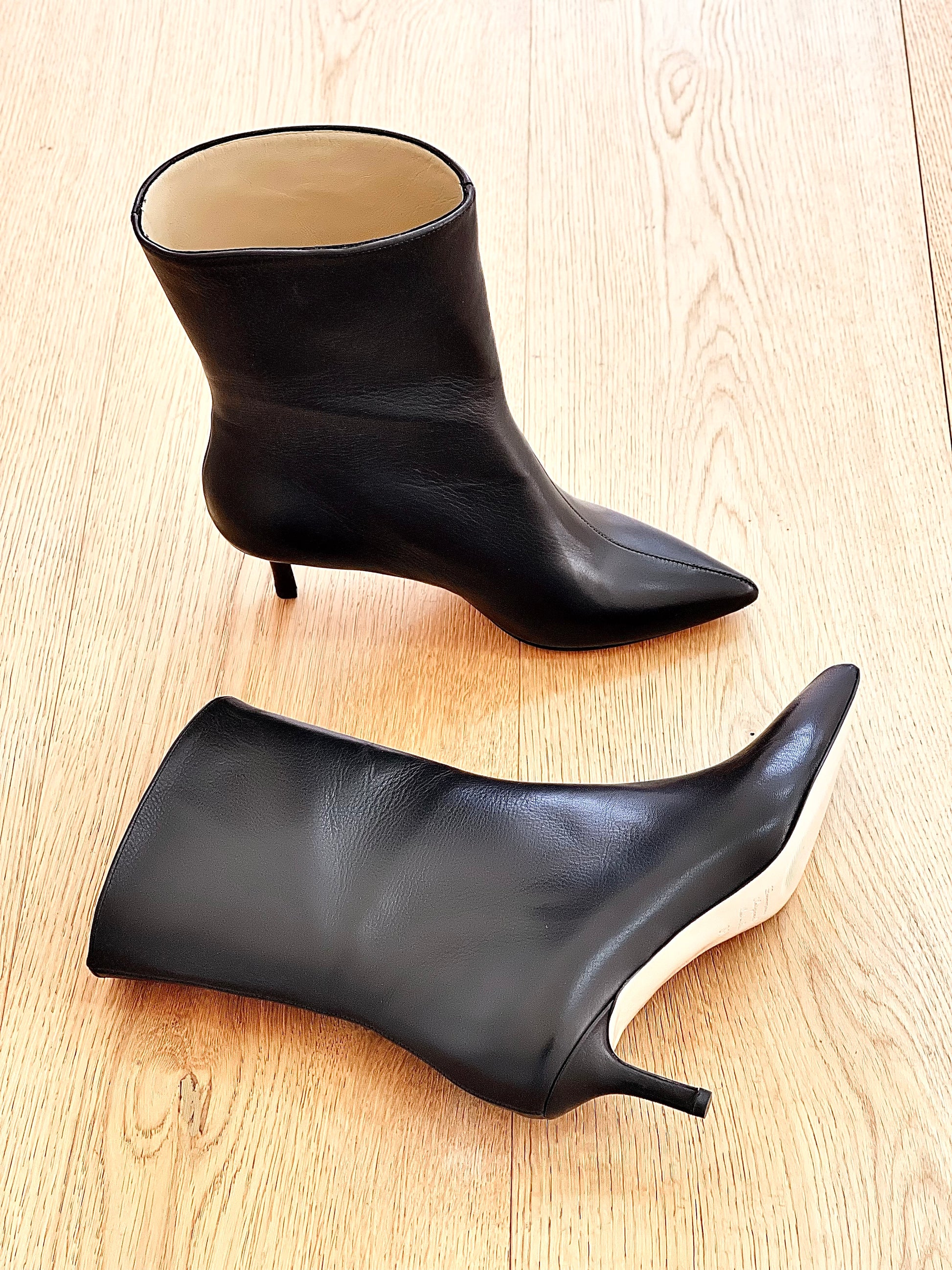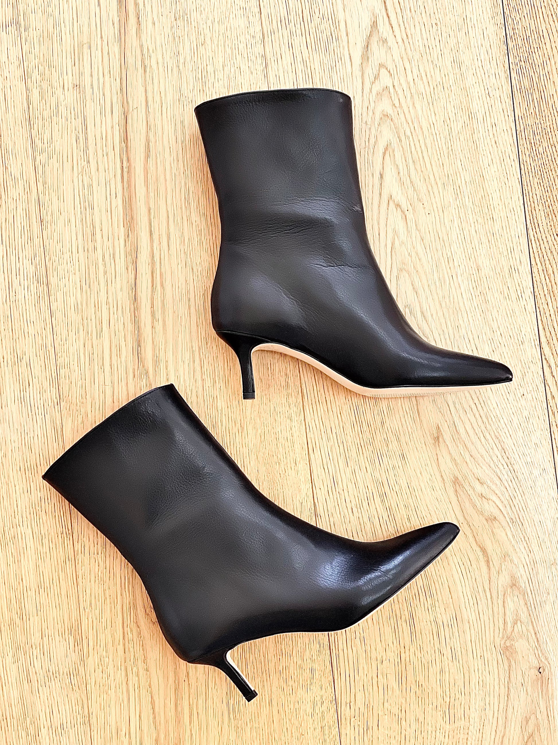 Bottines tubulaires à talon fin en cuir.