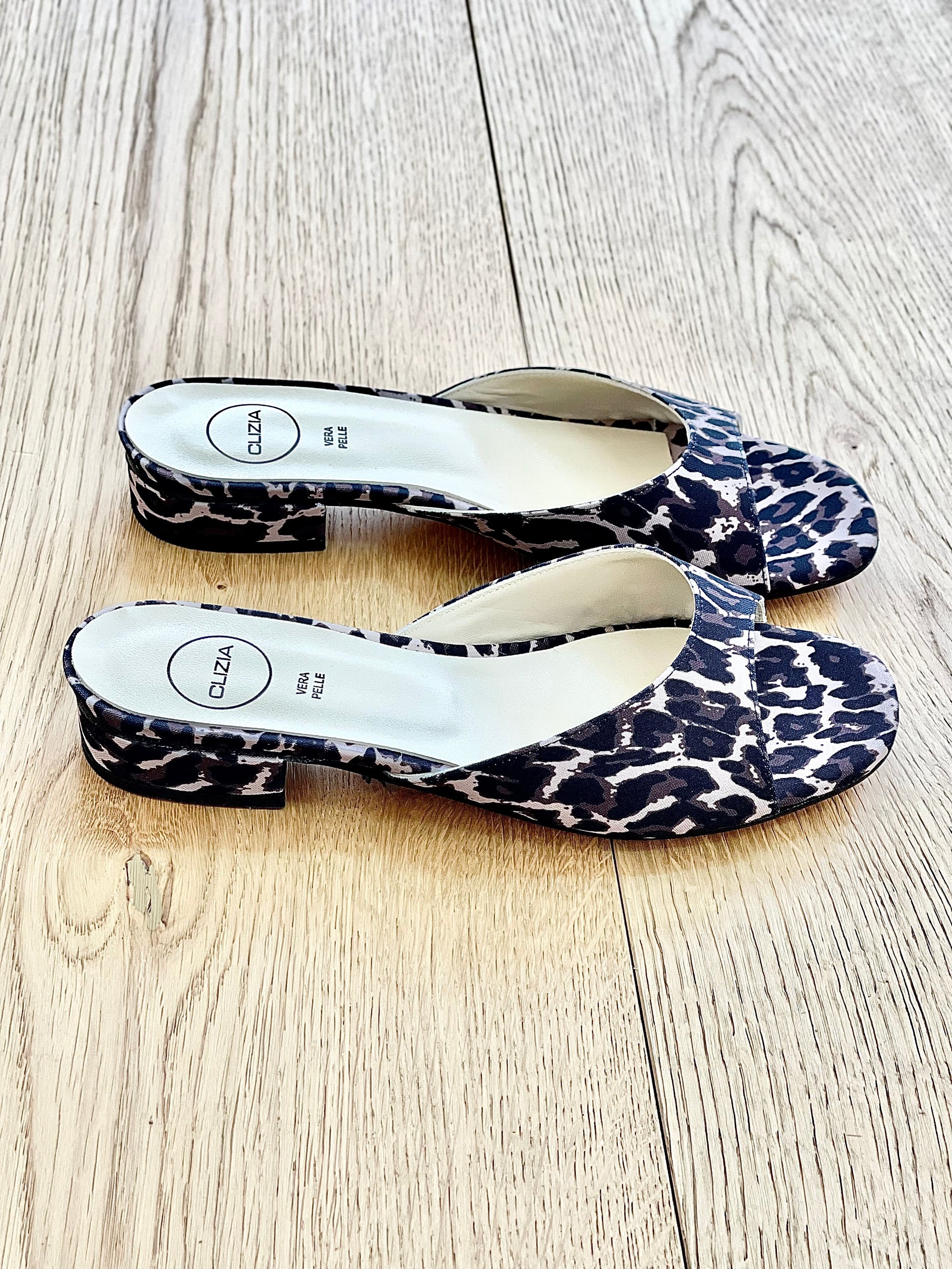 Mules basses sandales animalier talon 2cm.
