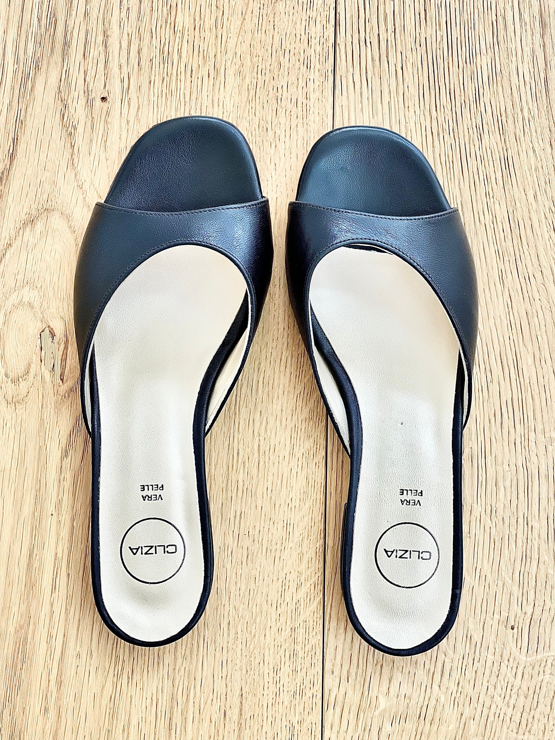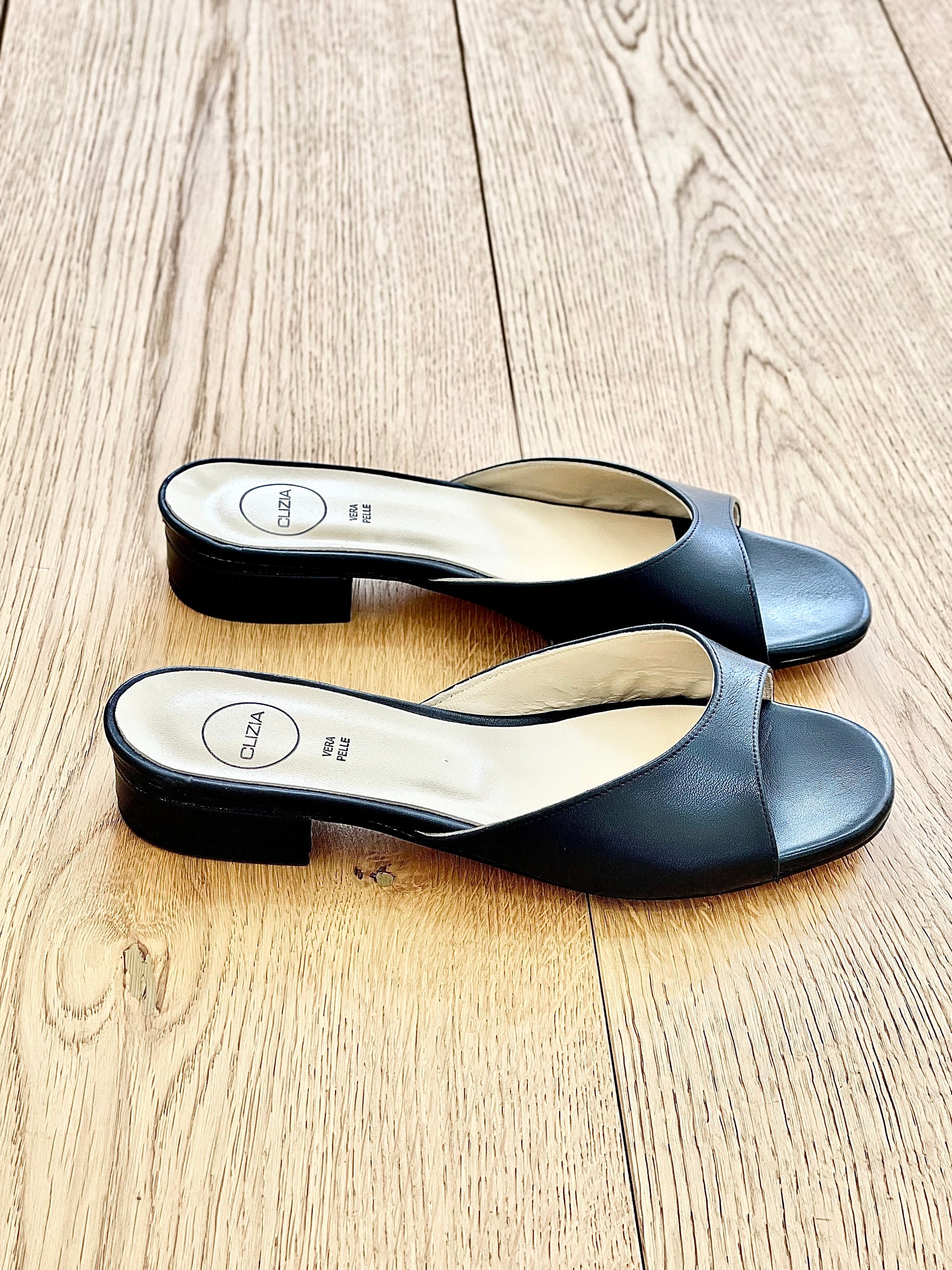 Sandales basses mules en cuir talon pantoufle 2cm.