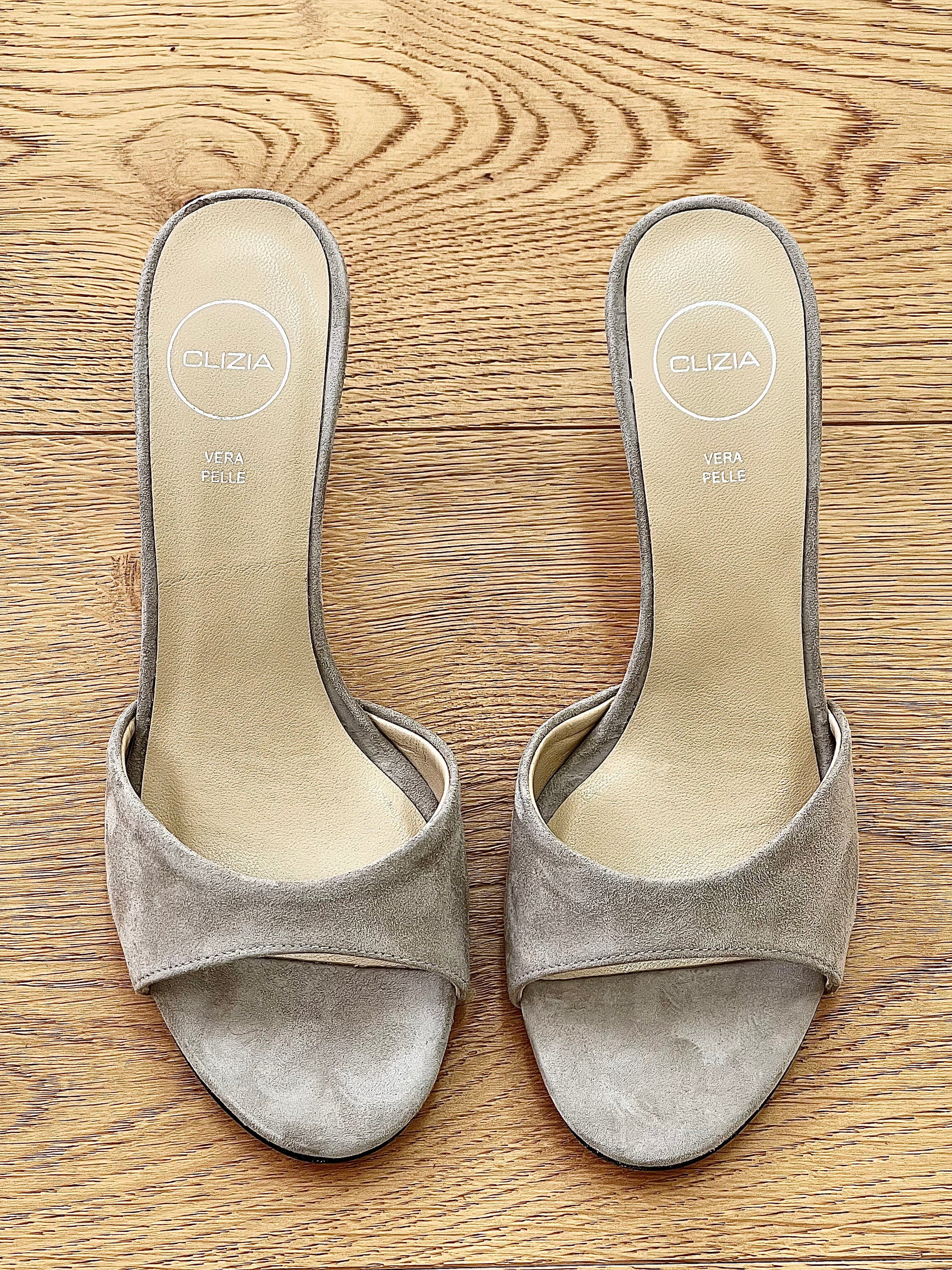 Sandales basses mules en daim sandales pantoufles talon de 6cm.