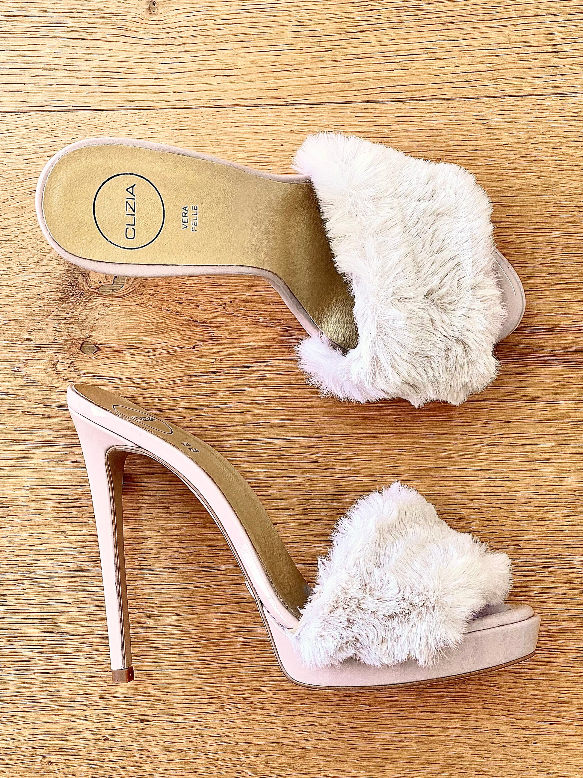 Mules hautes, sandales en fourrure, pantoufles, plateau, talon aiguille.