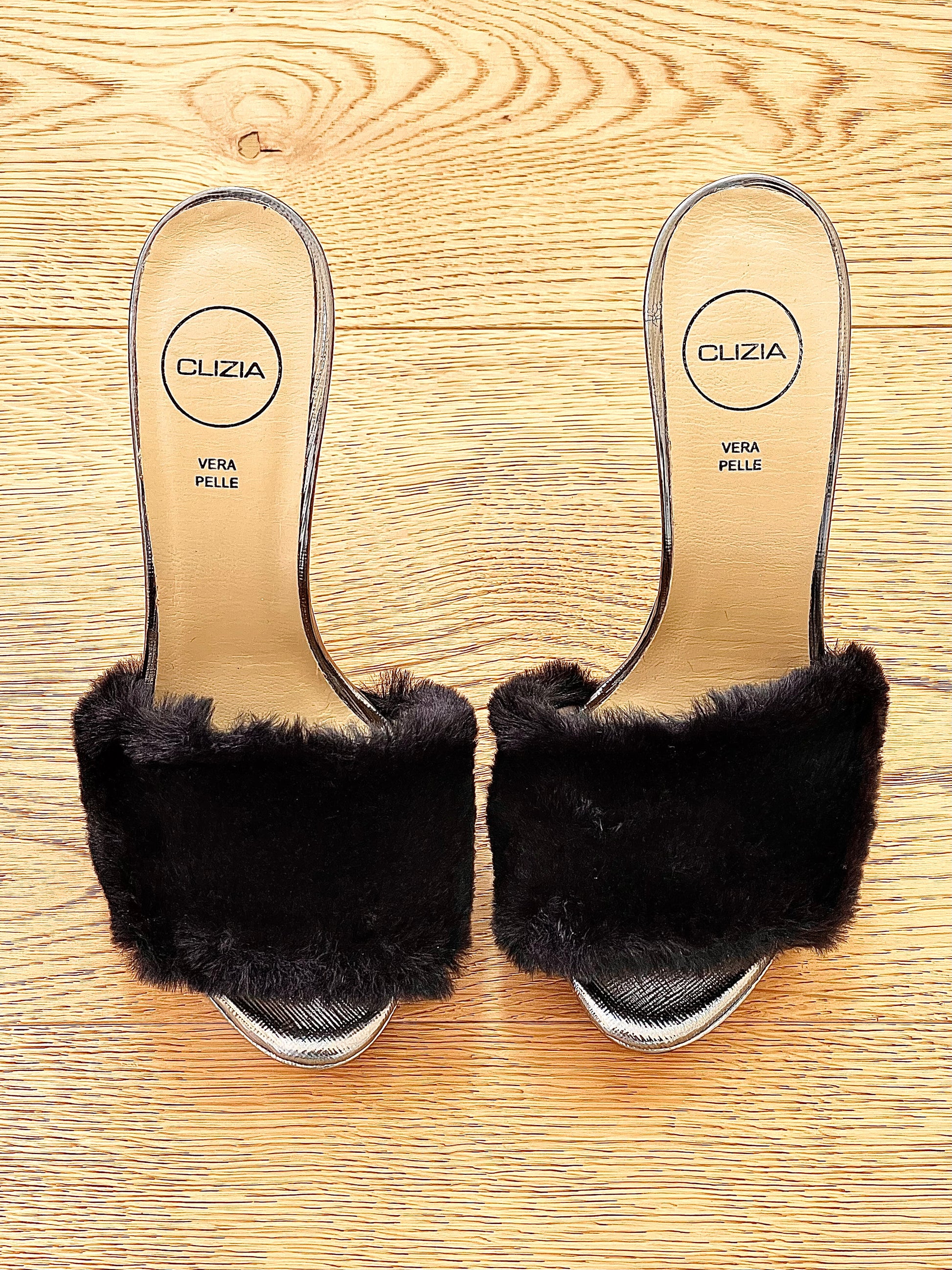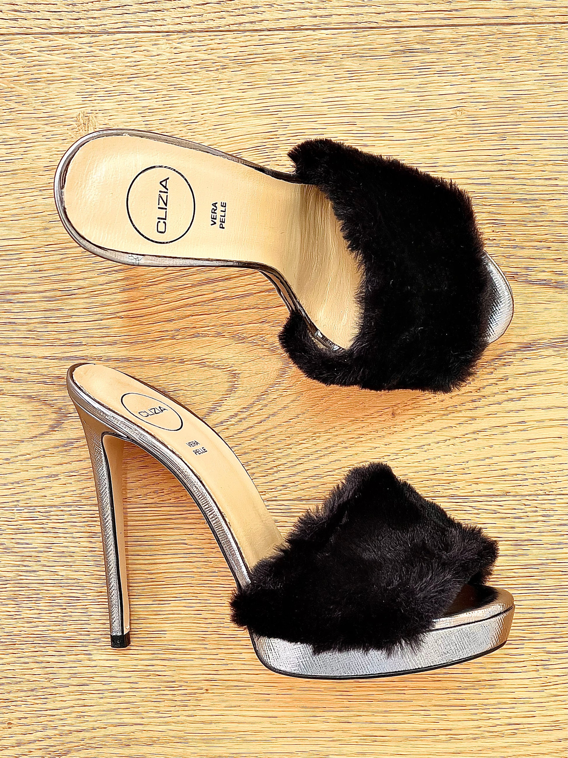 Mules hautes, sandales en fourrure, pantoufles, plateau, talon aiguille.