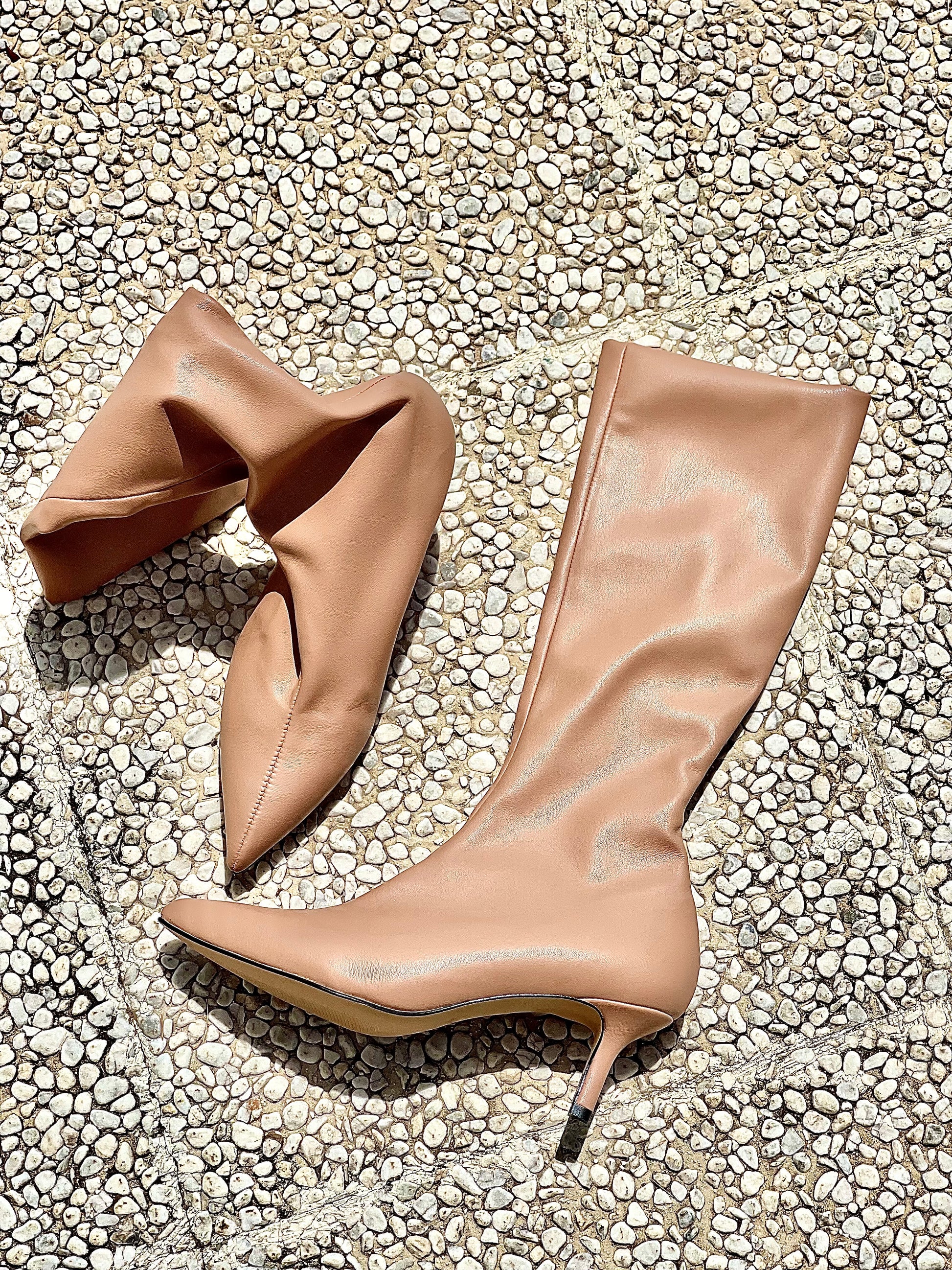 Bottes en stretch à bout pointu et talon de 6 cm.