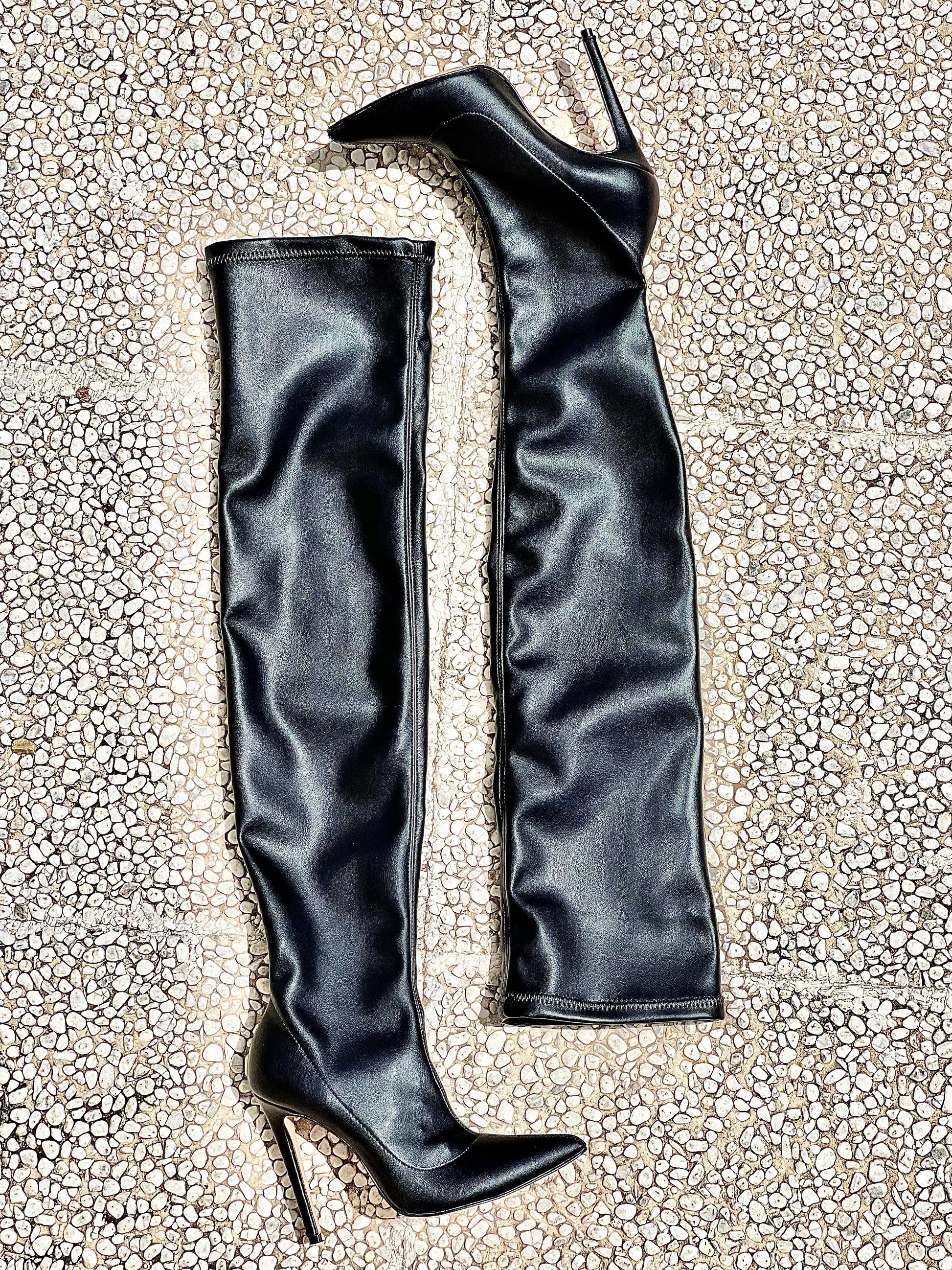 Bottes cuissardes élastiquées à talon de 10 cm.