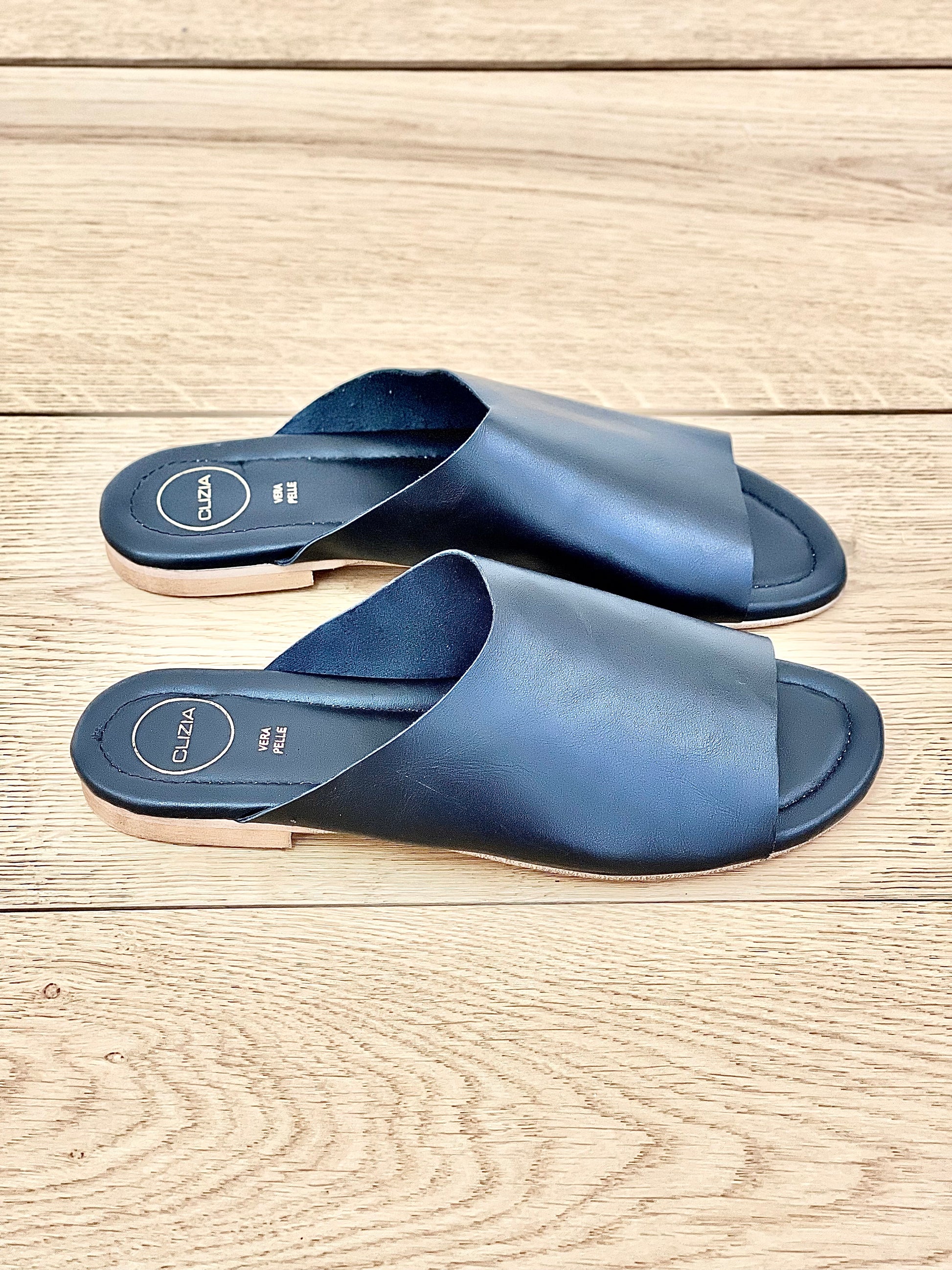 Sandales basses mules en cuir talon pantoufle 2cm.