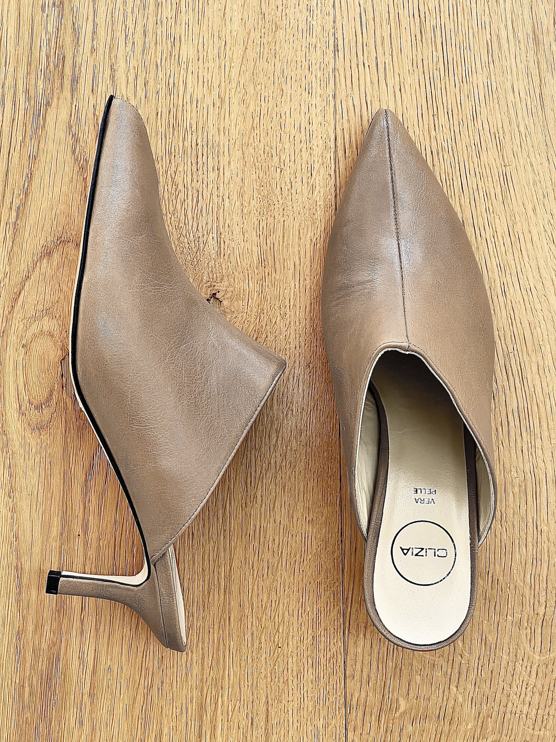 Sabot en cuir à bout pointu avec un talon de 6 cm.
