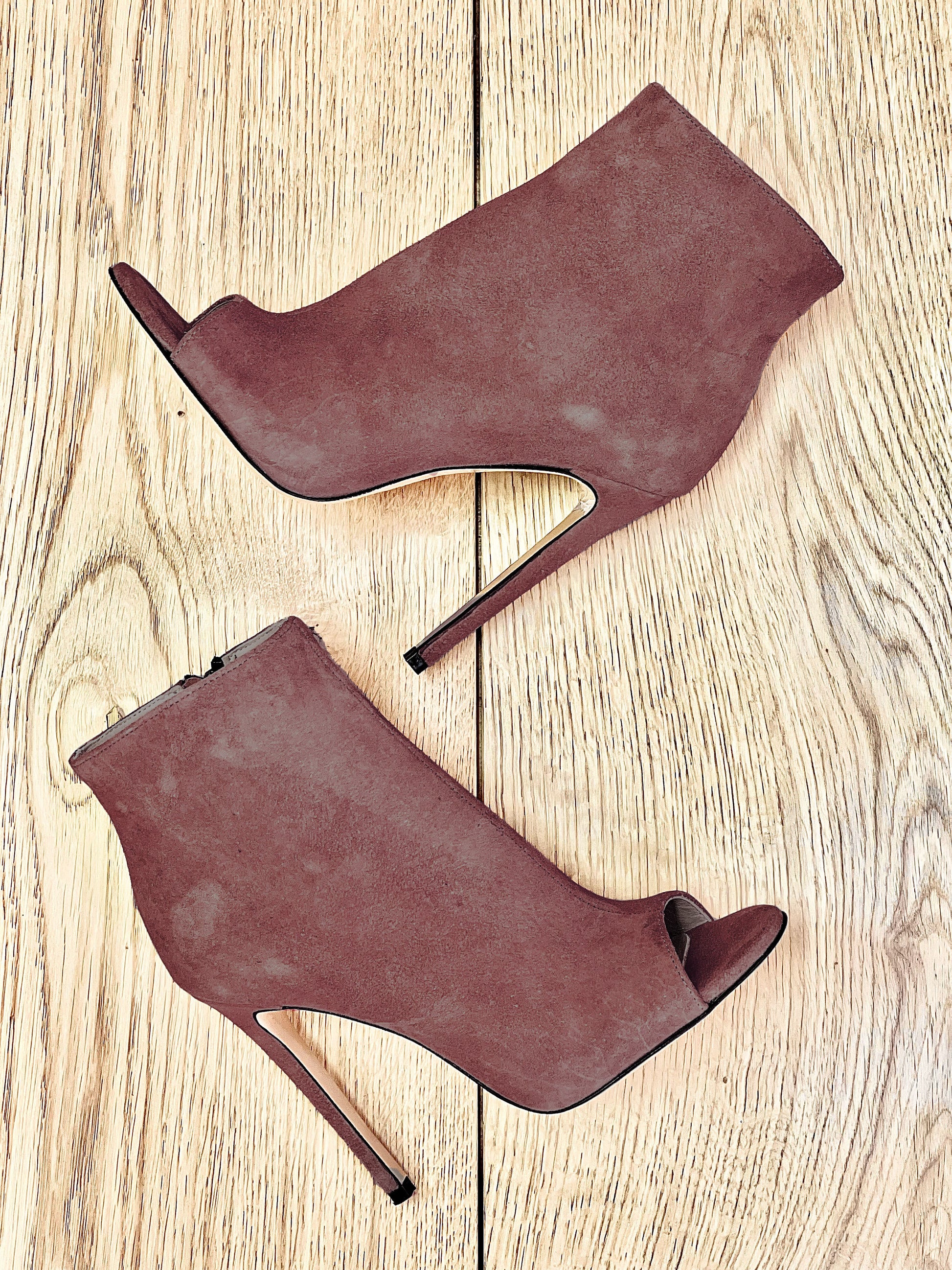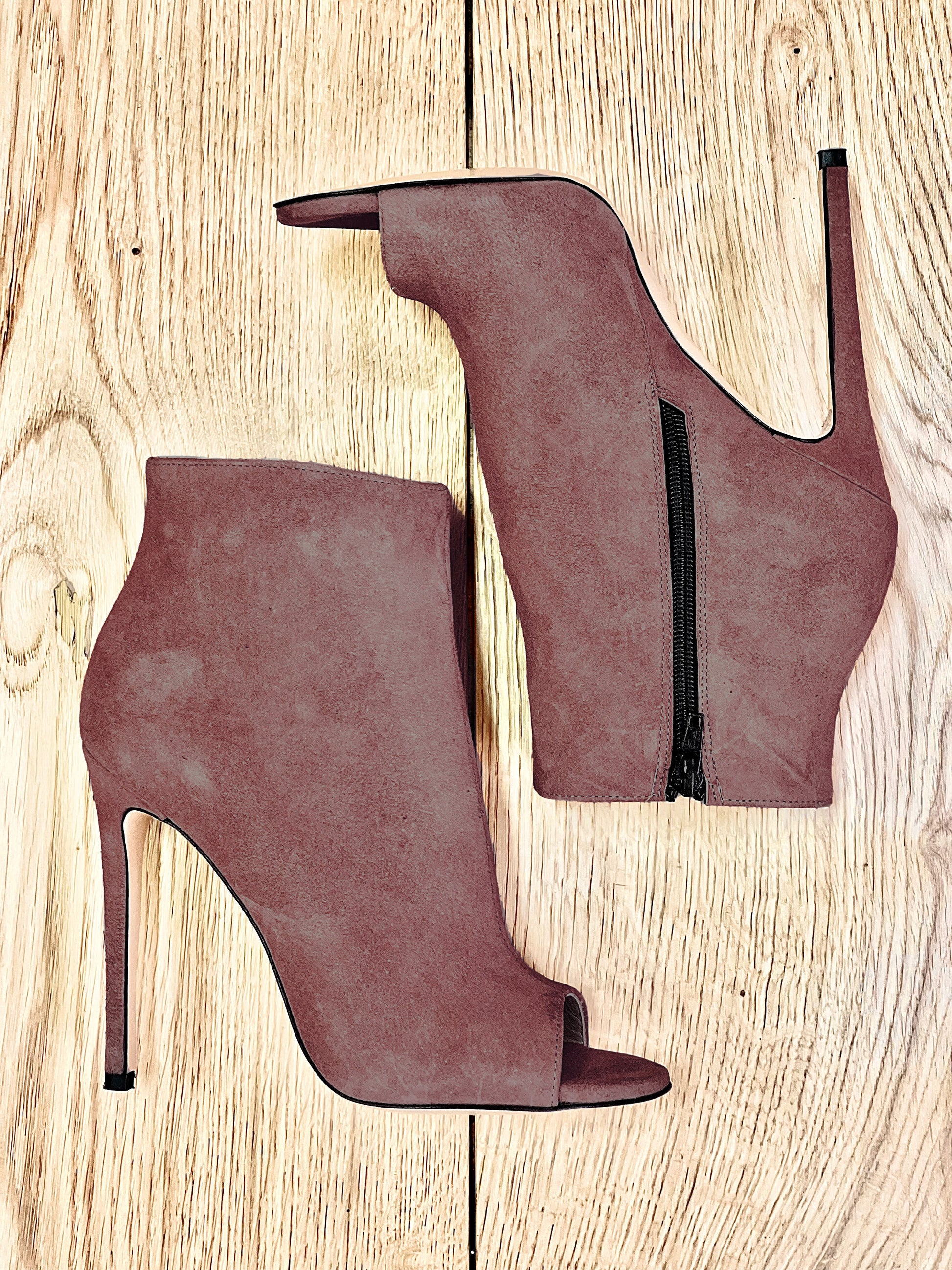 Bottines en daim à talon haut, avec un talon de 12 cm.