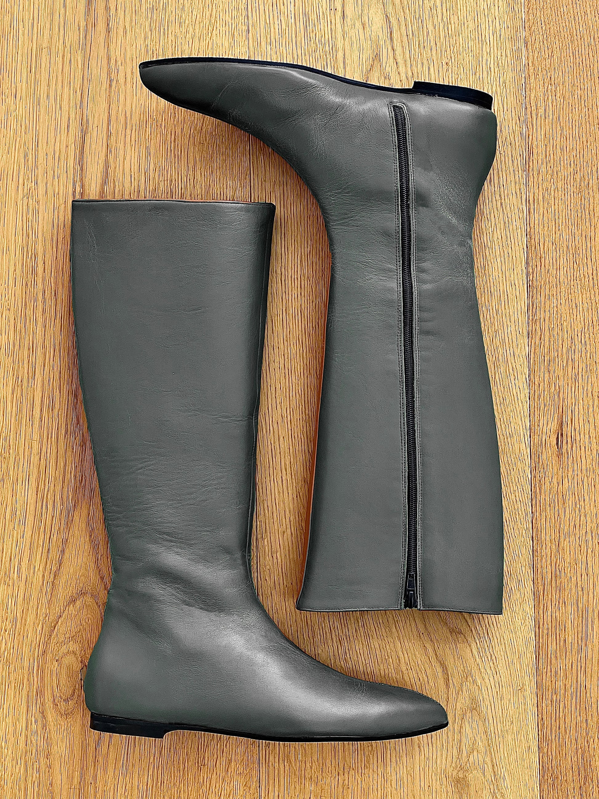 Bottes en cuir à bout pointu avec un talon de 1 cm.