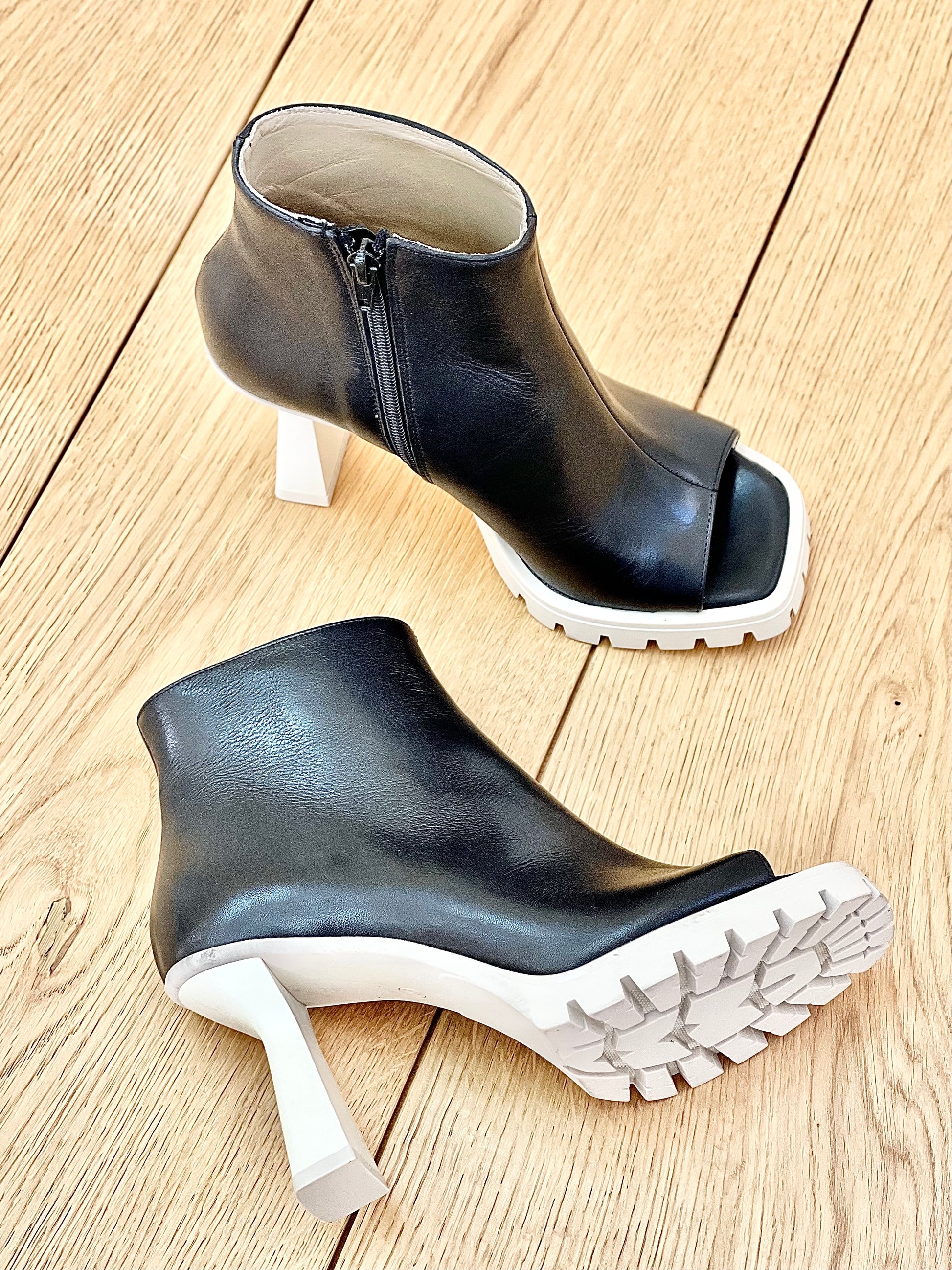 Bottines hautes à bout ouvert en cuir sur plateforme en caoutchouc.