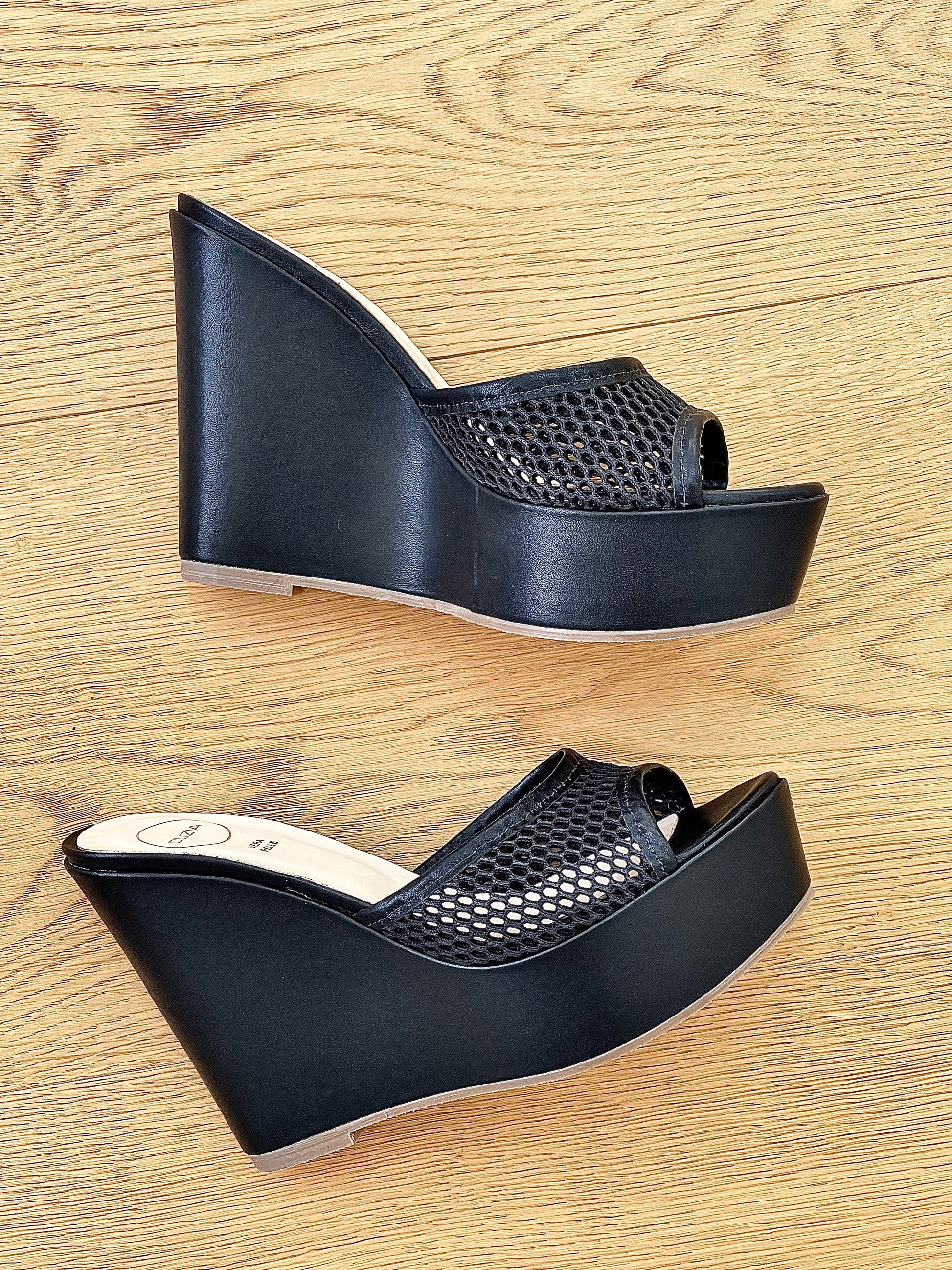 Mules hautes en maille sandales 11cm wedge.