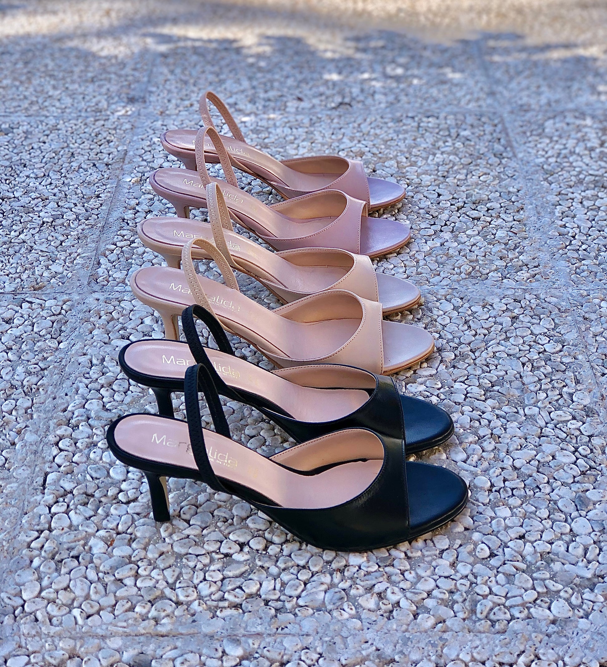 Sandales mules avec talon élastique jusqu'à 6 cm.