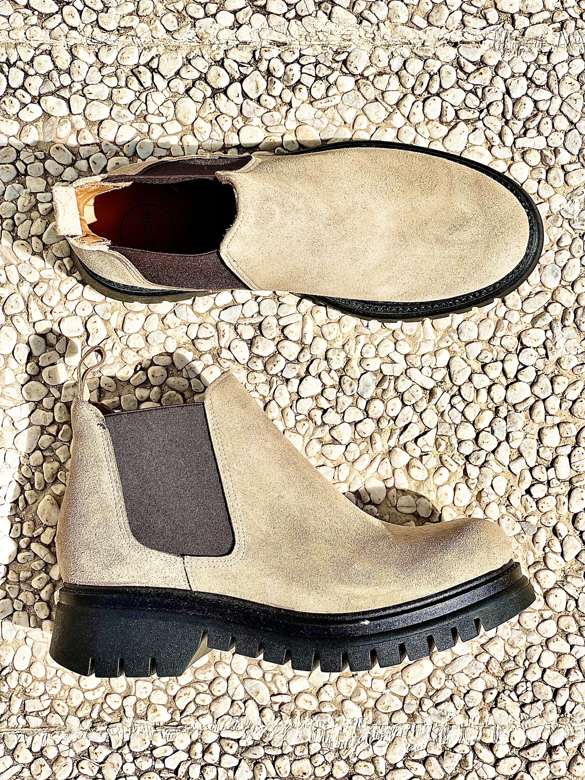 Botte chelsea en cuir suédé avec talon de 3 cm.