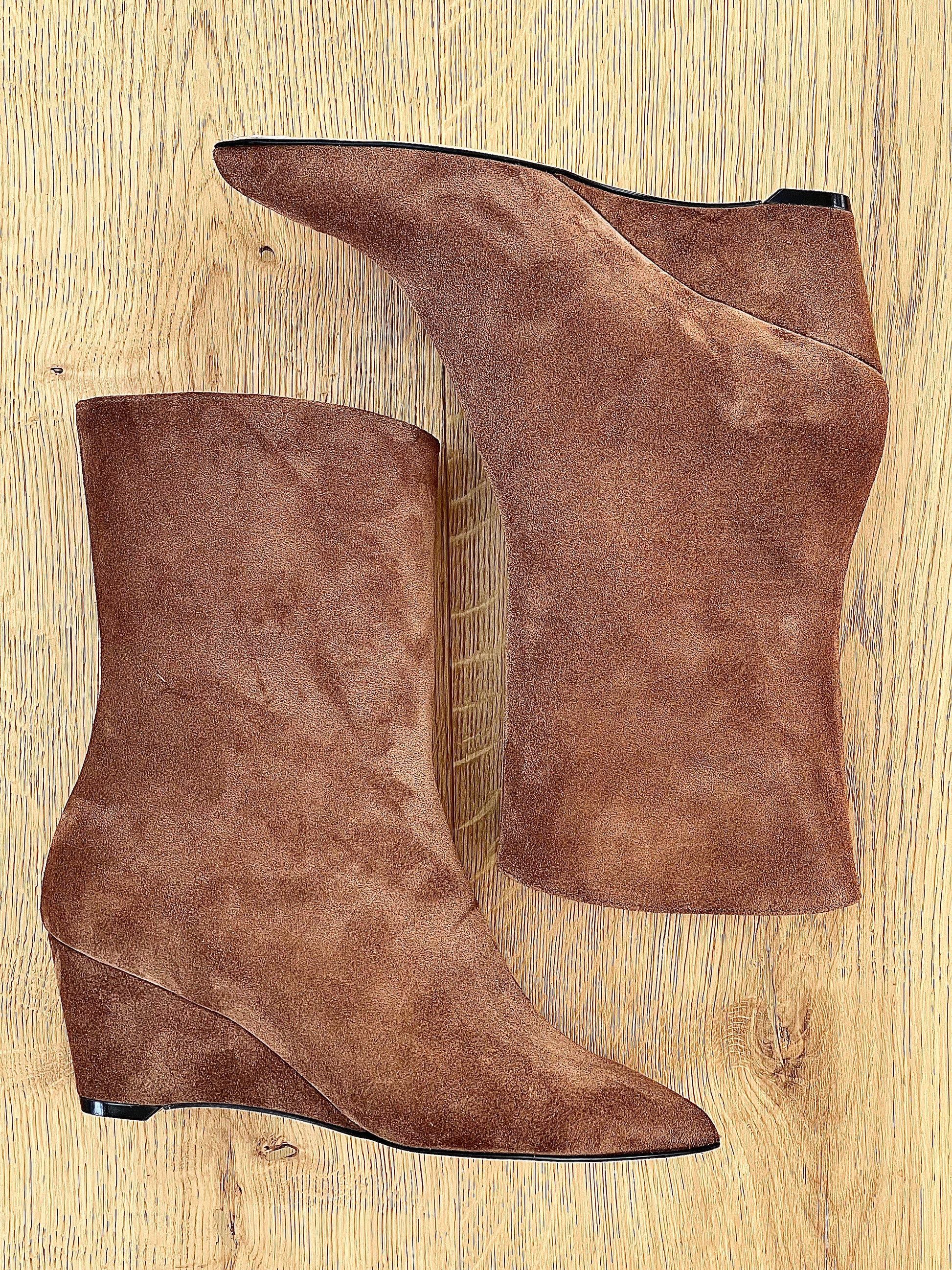 Bottines en daim tubulaires avec talon compensé à l'arrière de 6 cm.