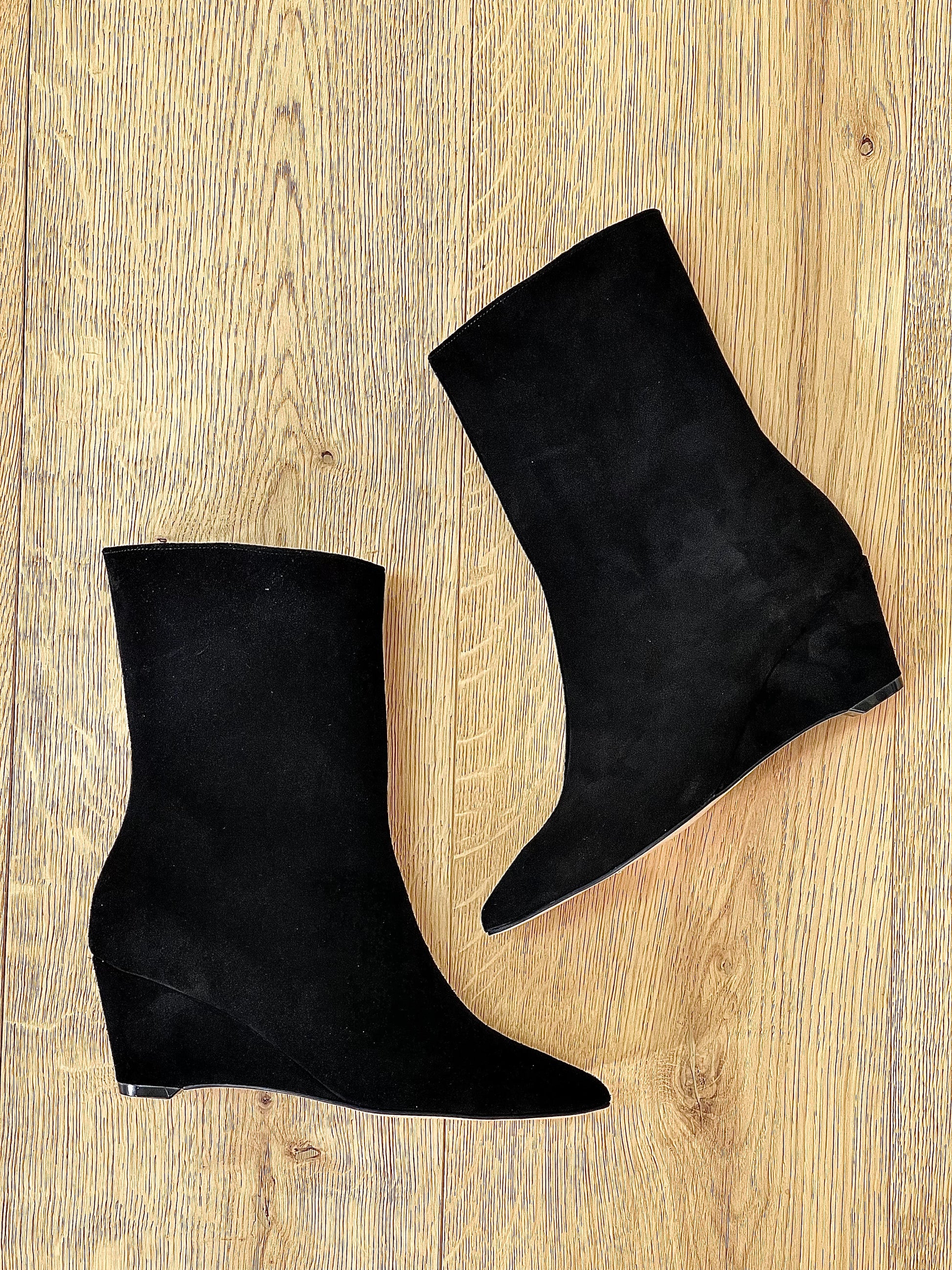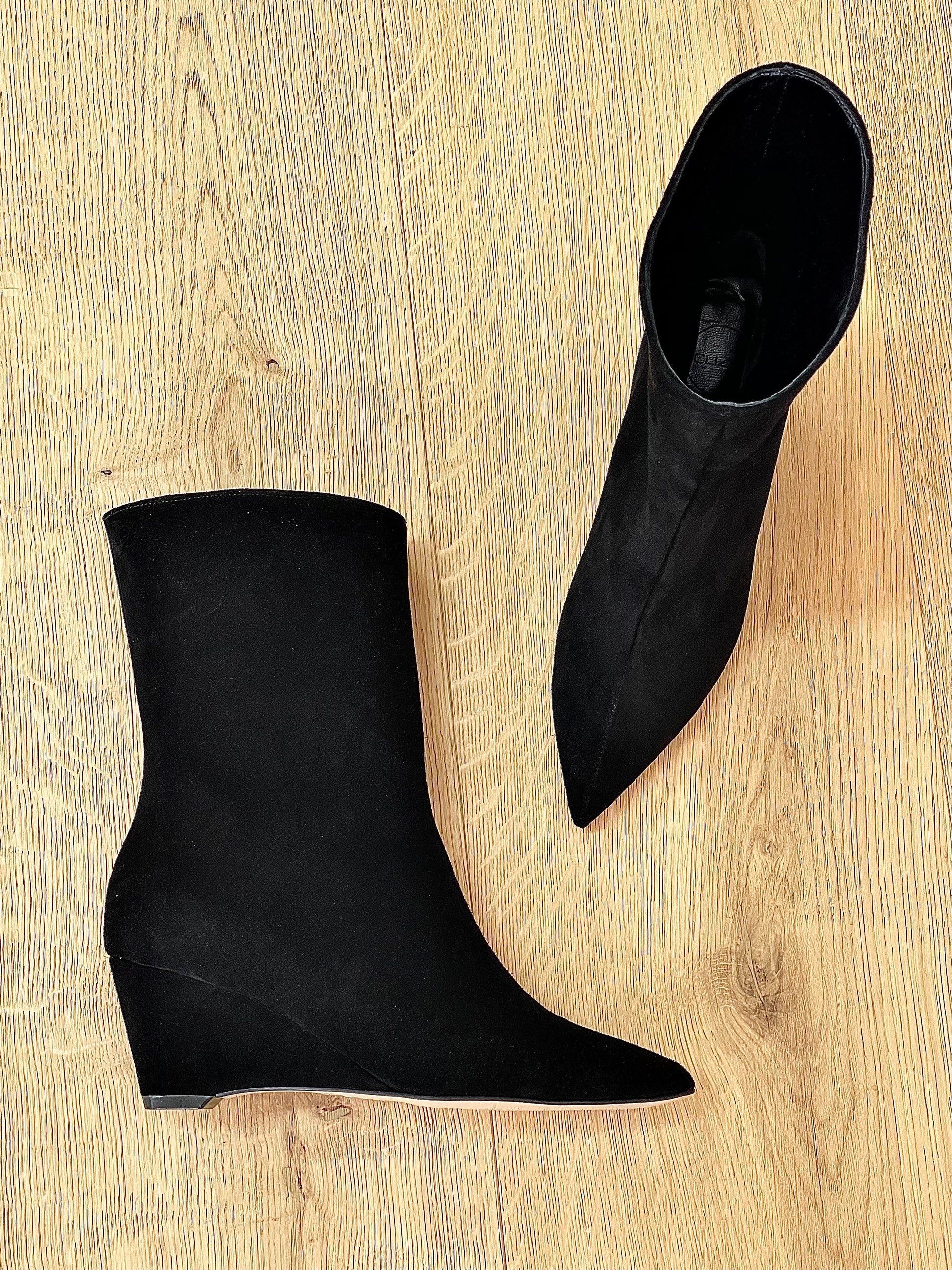 Bottines en daim tubulaires avec talon compensé à l'arrière de 6 cm.