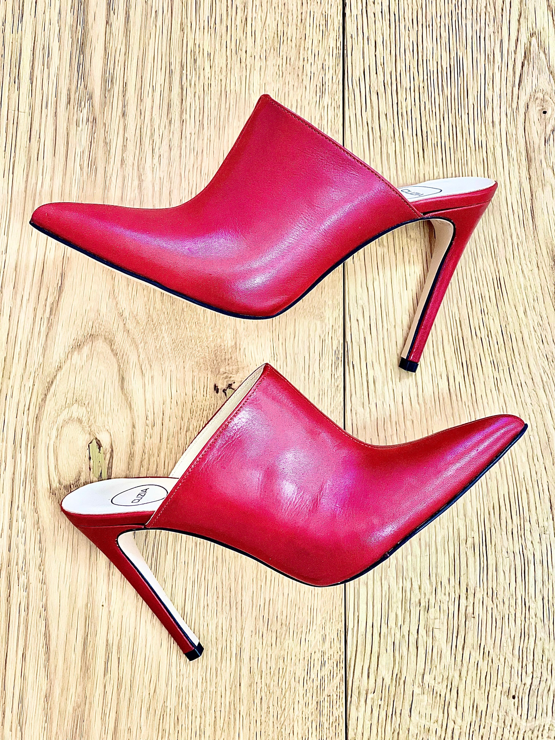 Sabot en cuir à bout pointu avec un talon aiguille de 10 cm.