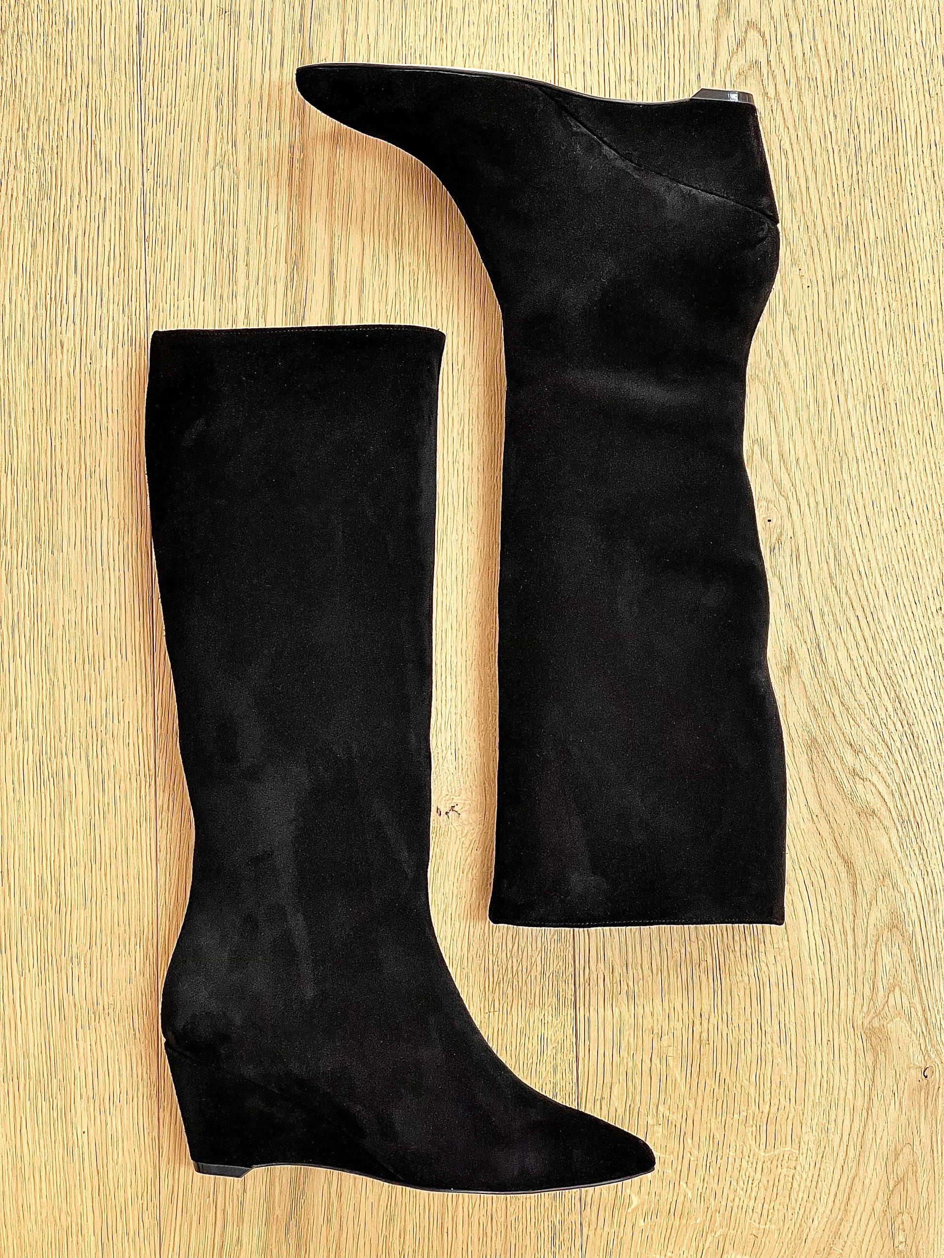 Bottes tubulaires en daim avec talon compensé à l'arrière de 6 cm.