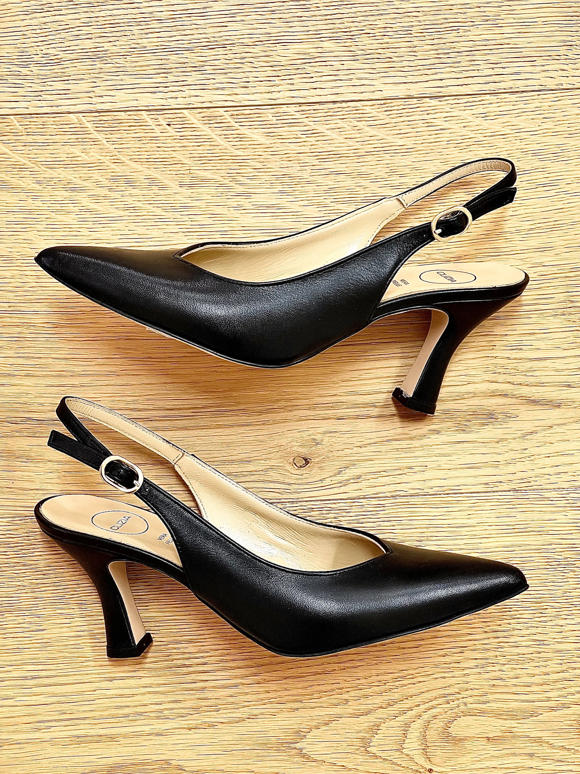 Escarpin à encolure en V avec talon bobine.