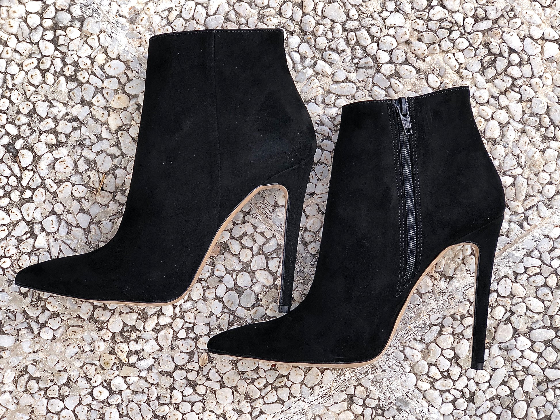 Bottines en daim à bout pointu avec un talon à pointes de 10 cm.