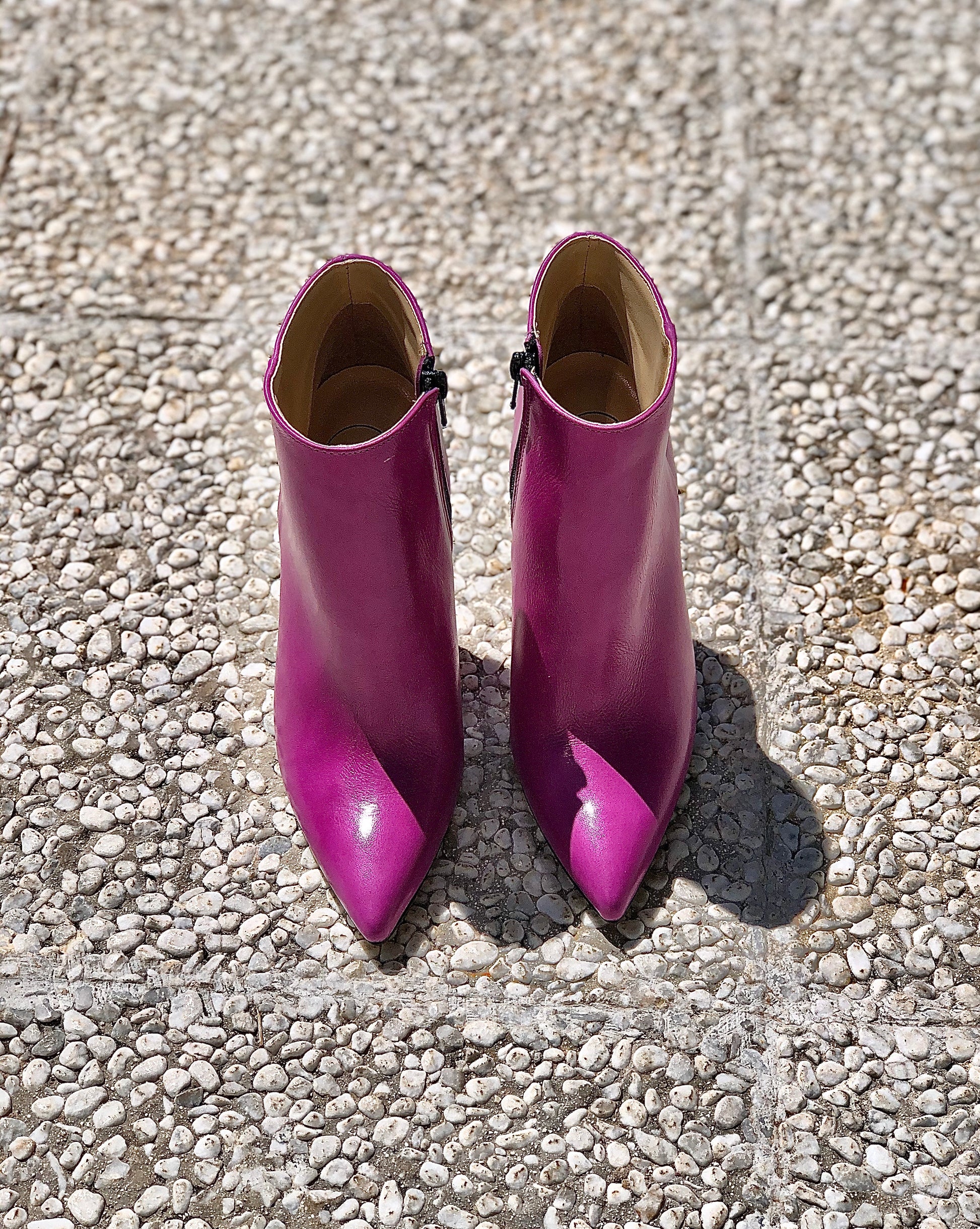 Bottines en cuir à bout pointu avec un talon de 10 cm.